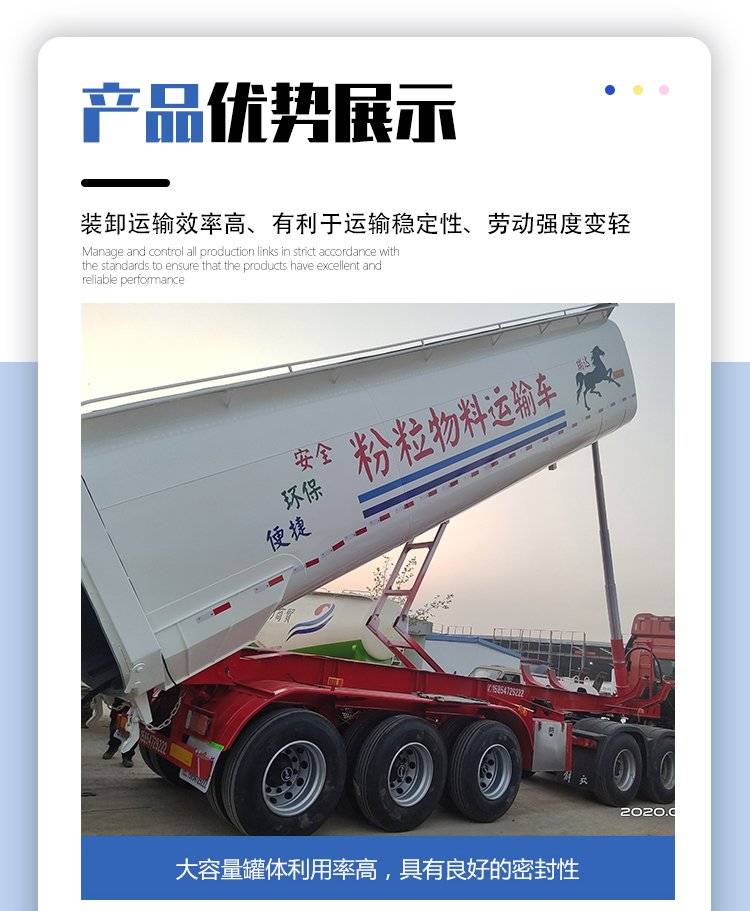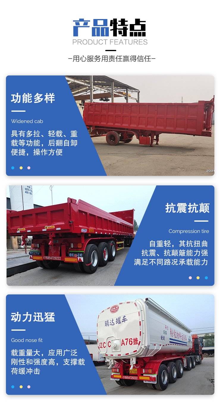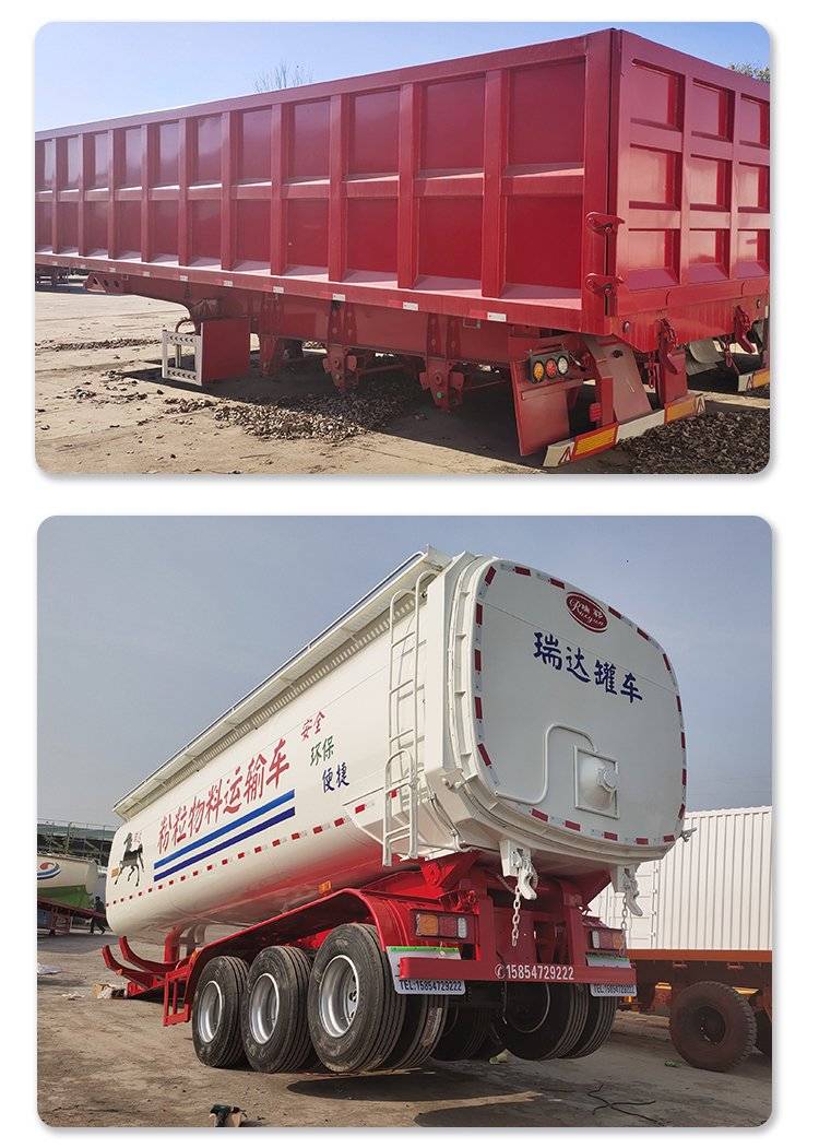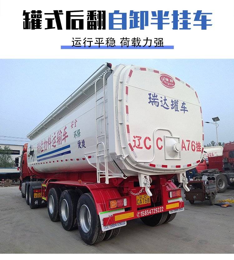 建筑工程罐式后翻半挂车 粉粒物料自卸运输车