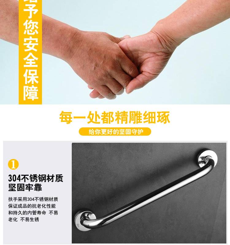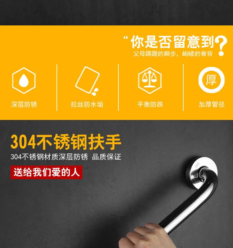 加厚304不锈钢浴室浴缸防滑扶手卫生间老人无障碍安全拉手加长粗