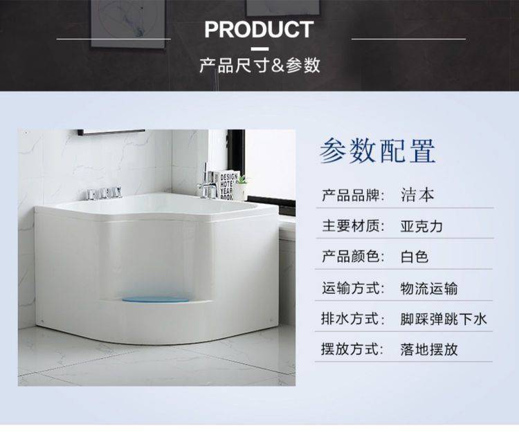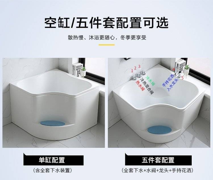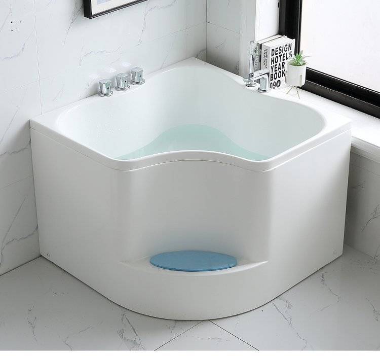 家用浴缸坐泡式小户型转角搭脚无障碍迷你防摔亚克力阶梯老人浴盆