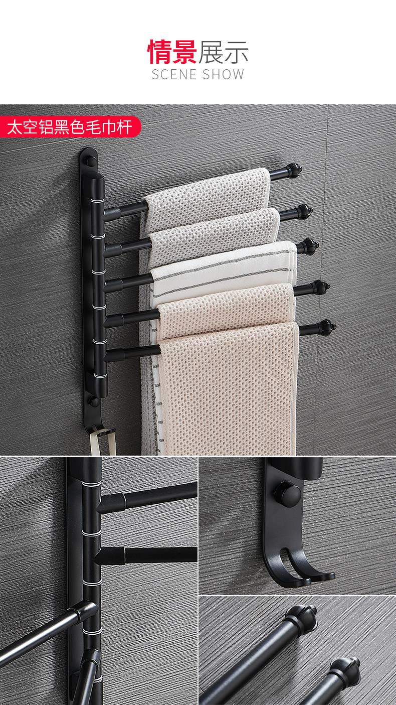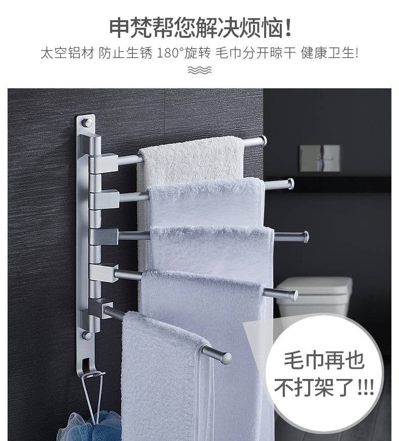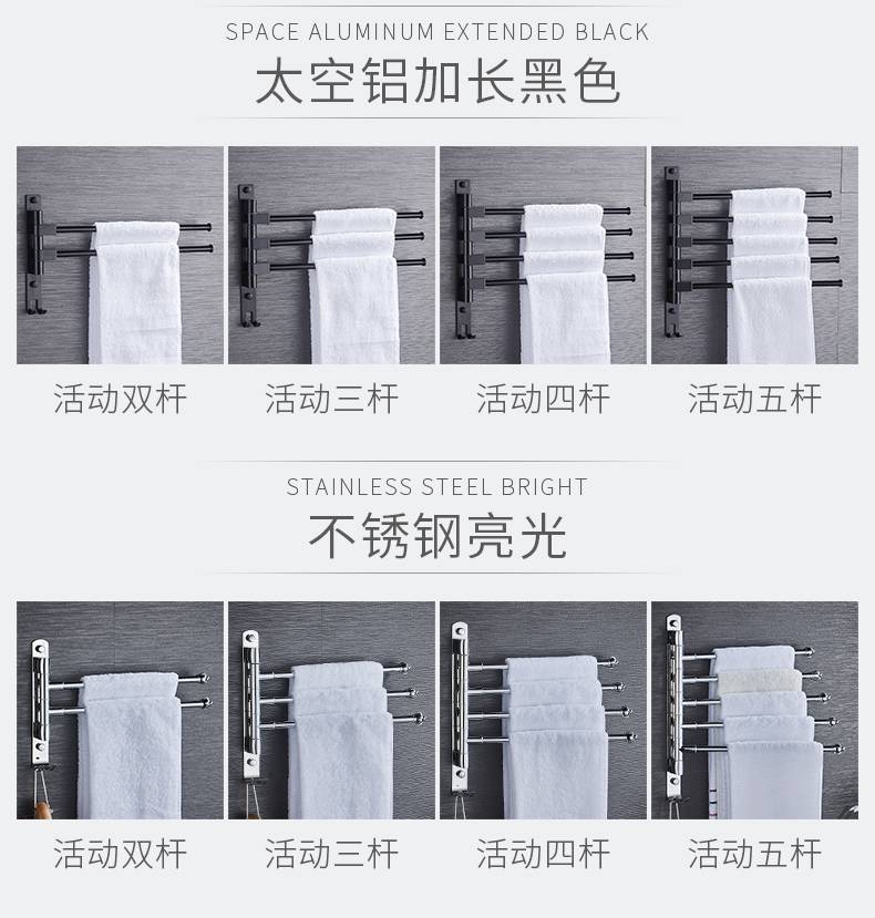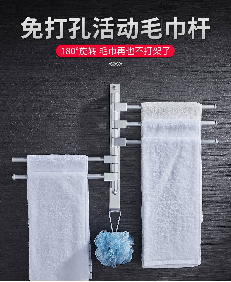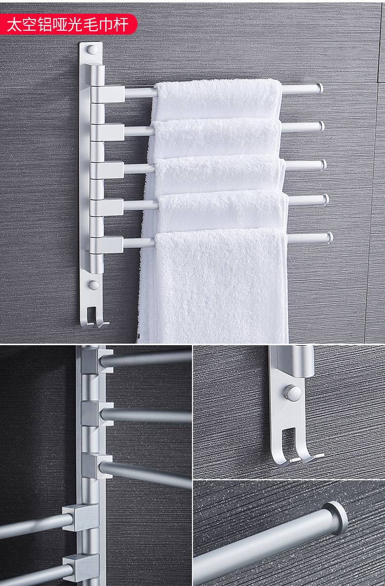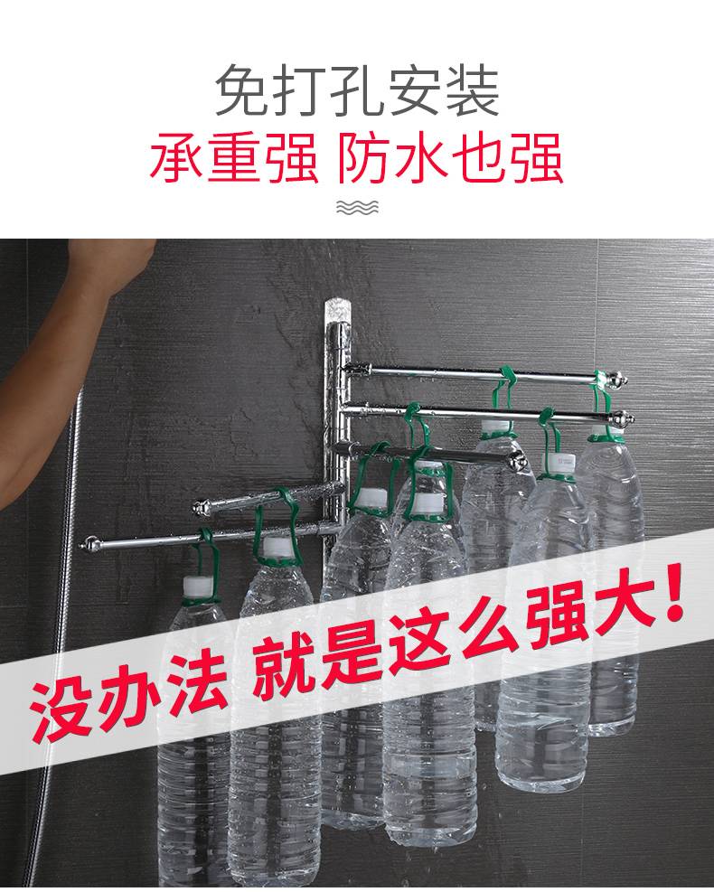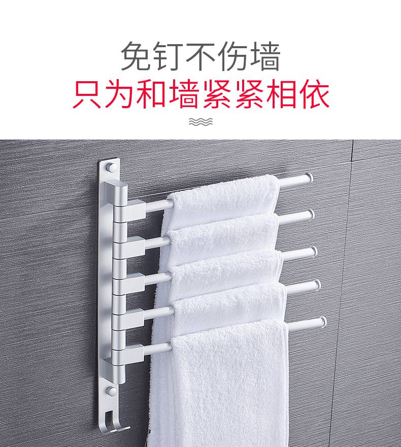 毛巾架免打孔卫生间不锈钢挂架浴室置物架折叠神器多功能旋转多杆