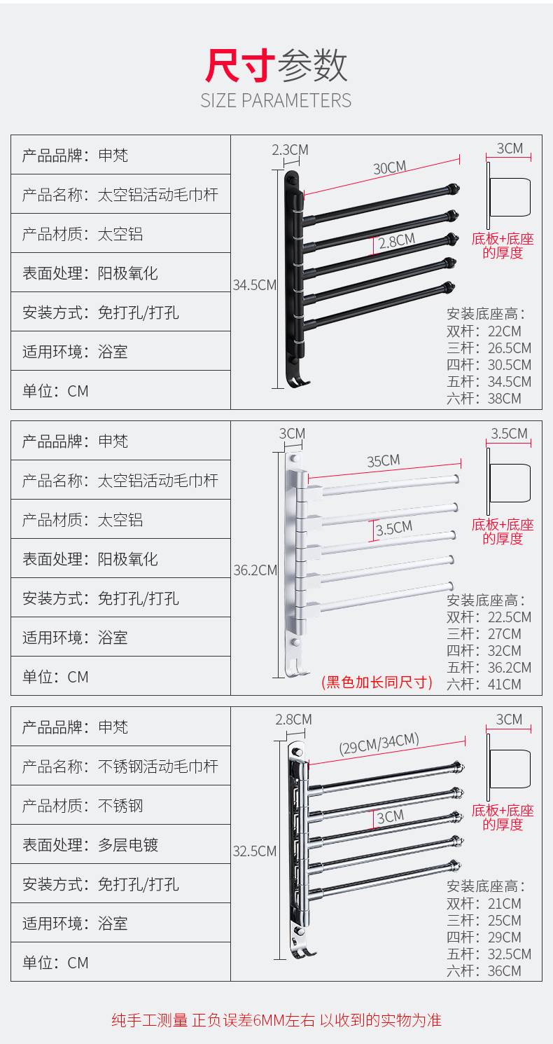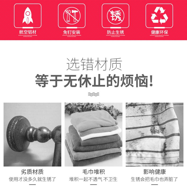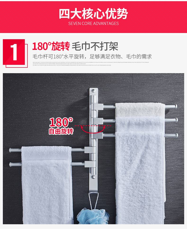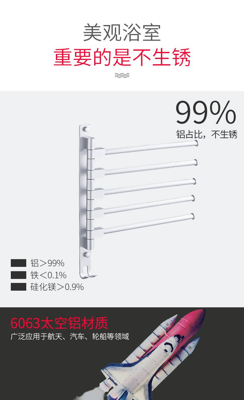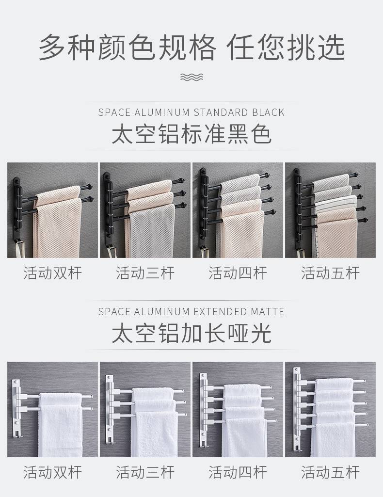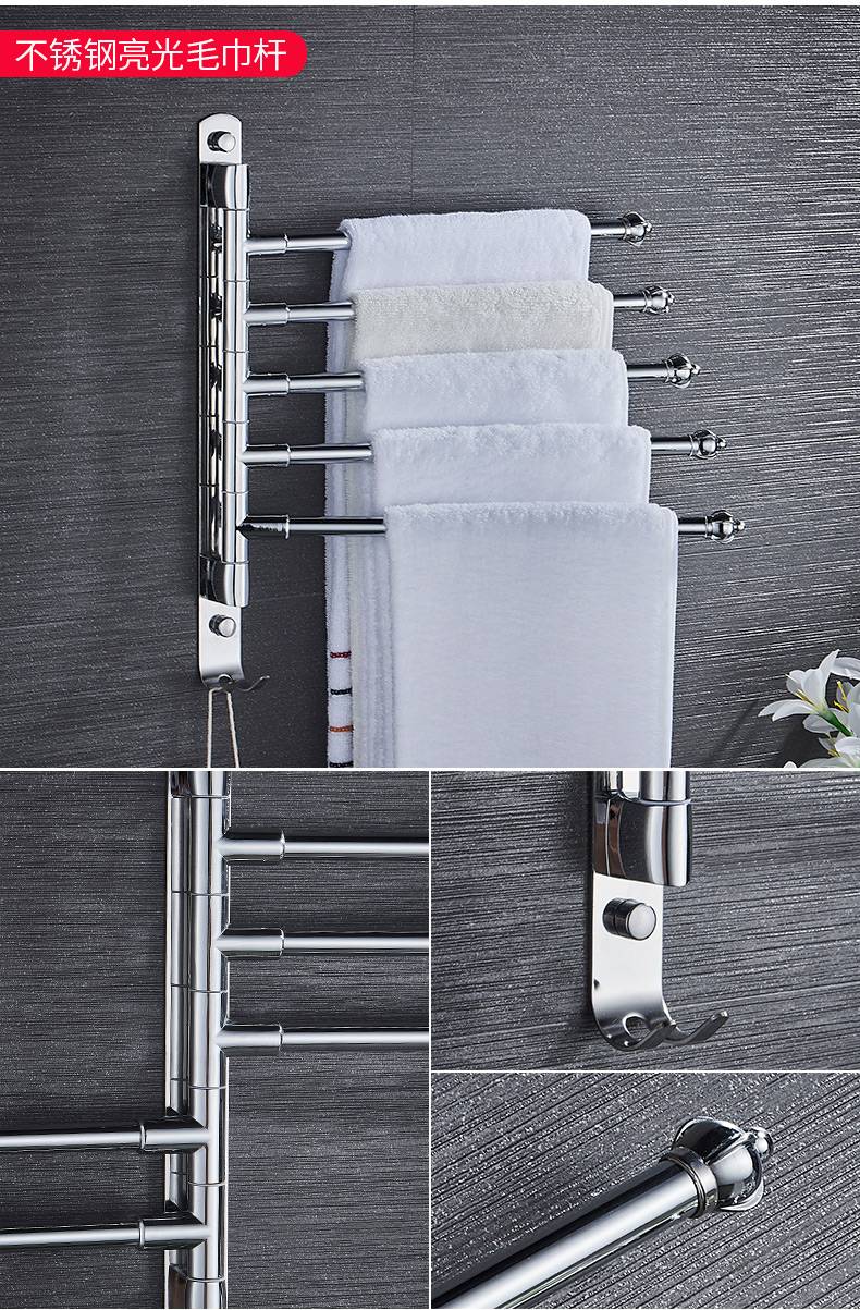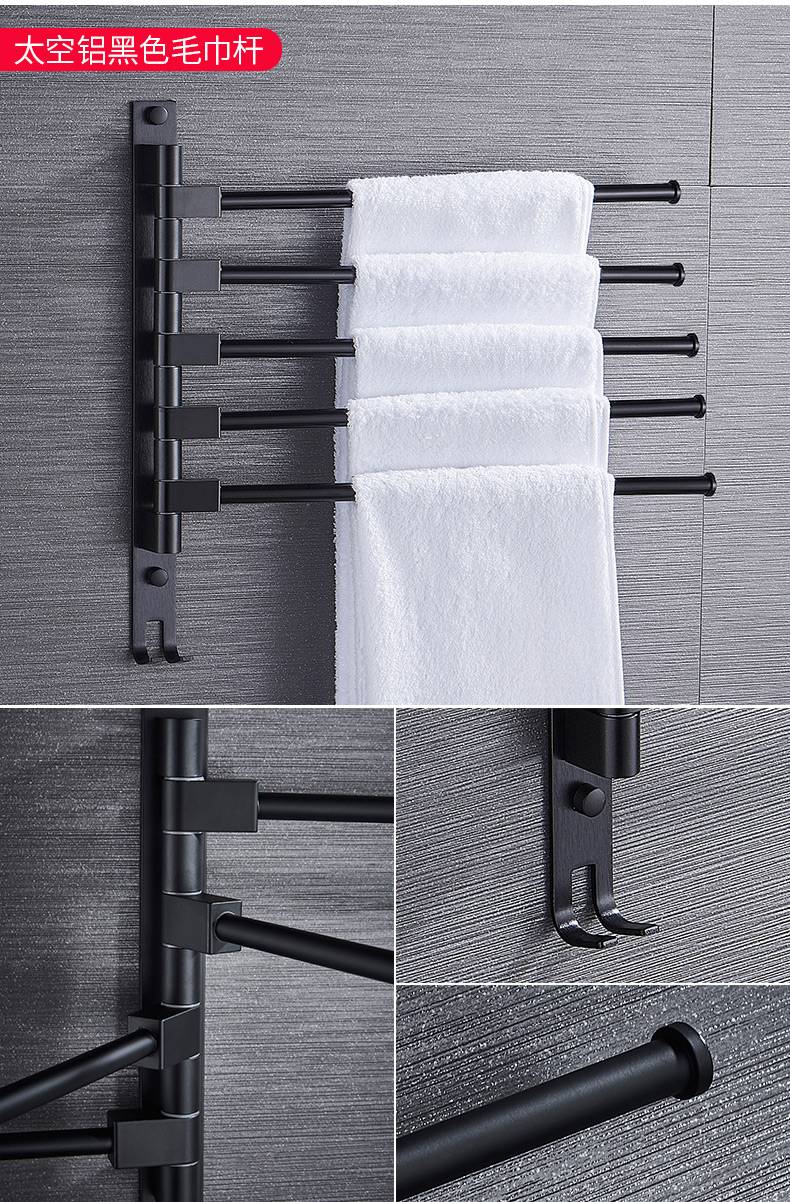 毛巾架免打孔卫生间不锈钢挂架浴室置物架折叠神器多功能旋转多杆
