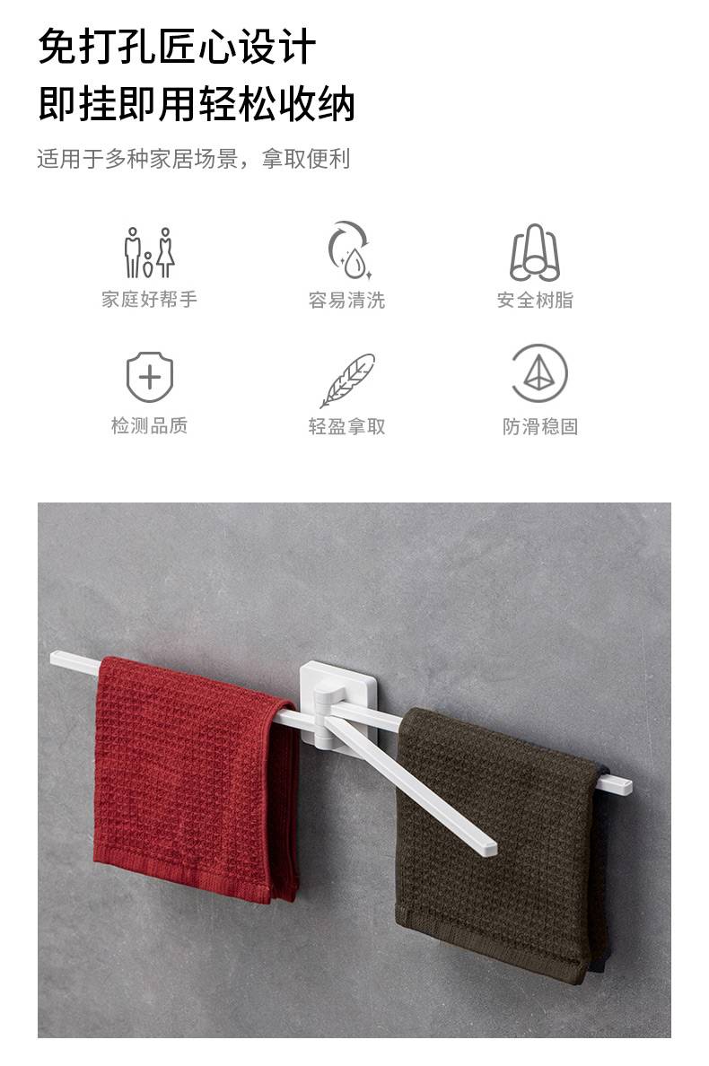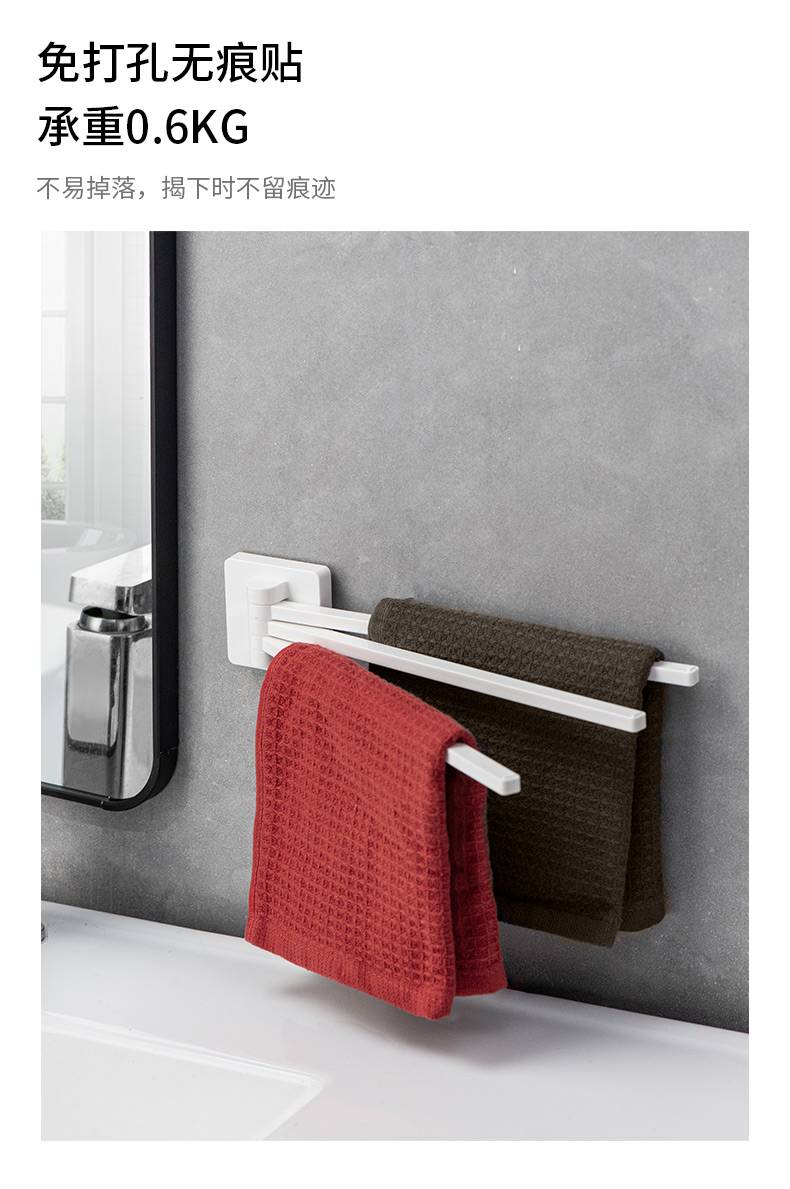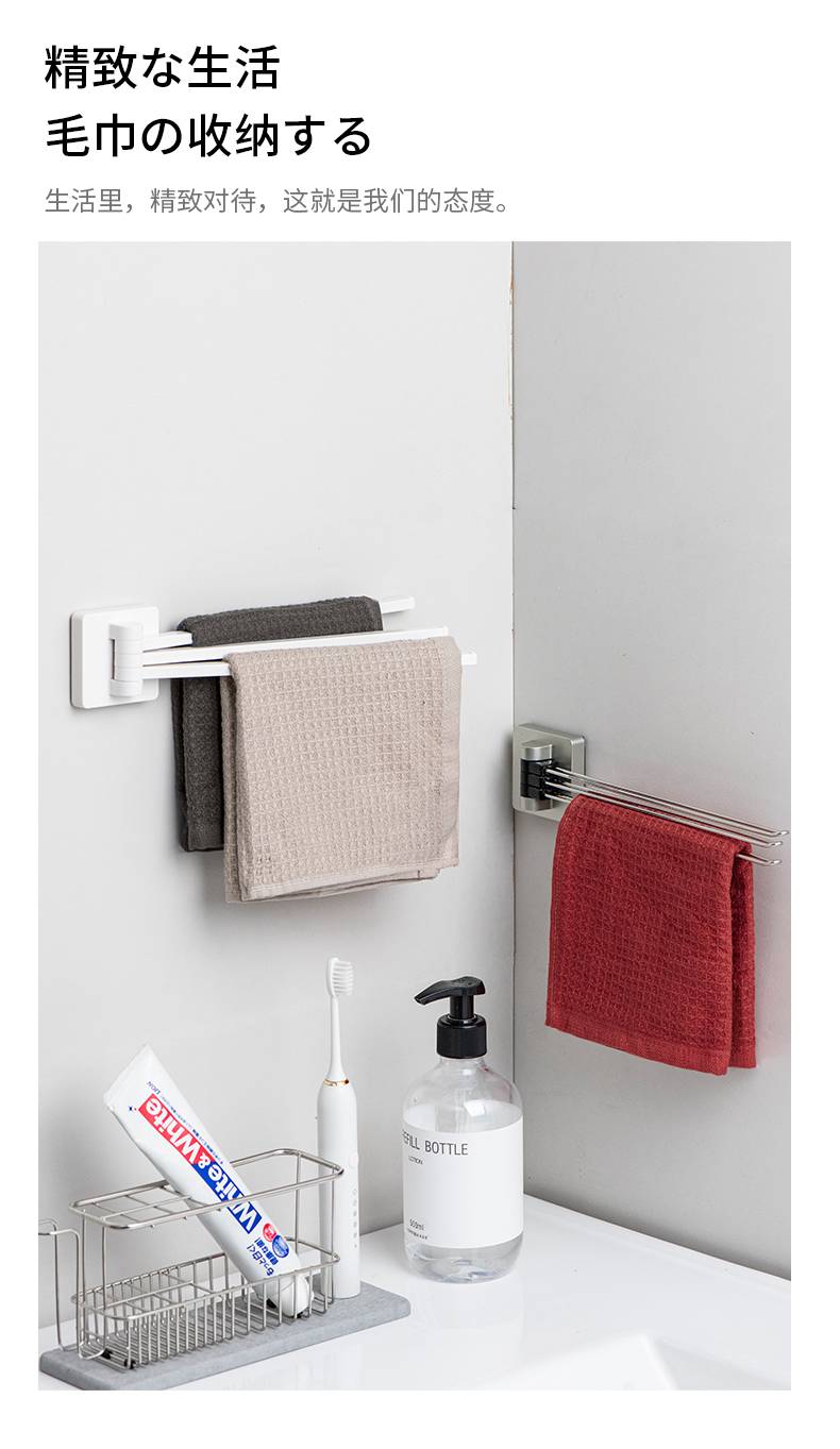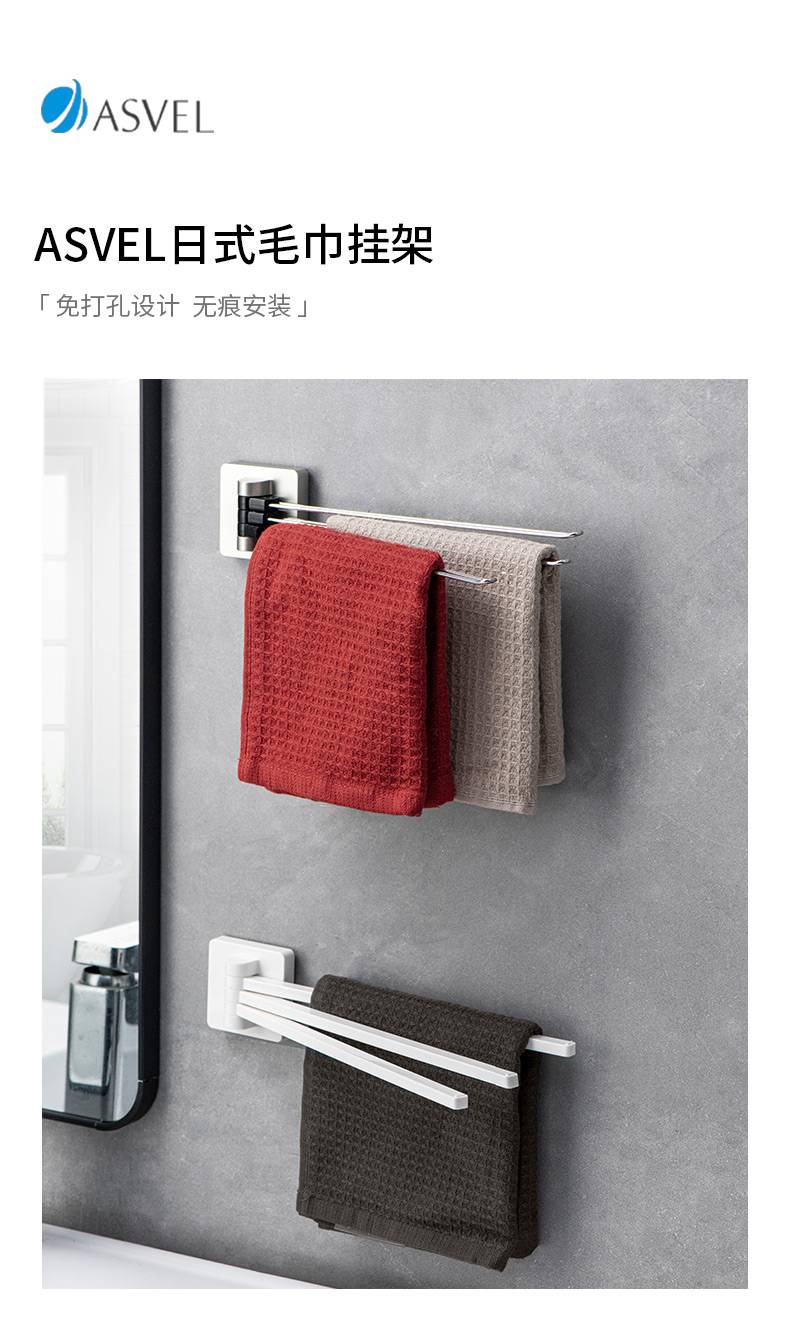 日本ASVEL 卫生间旋转毛巾架免打孔浴室不锈钢置物架子洗手间挂杆