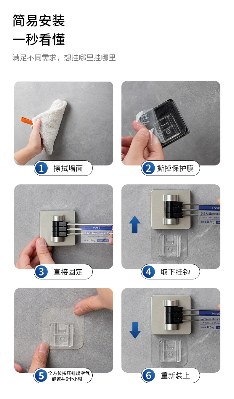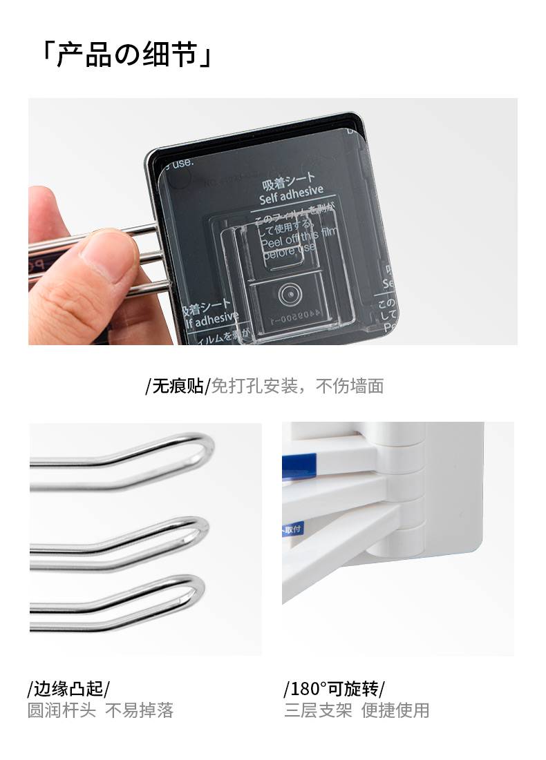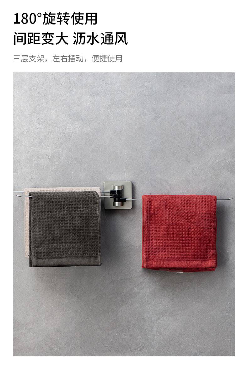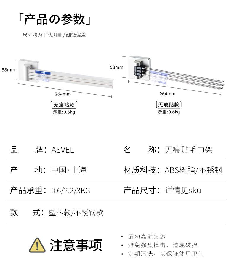 日本ASVEL 卫生间旋转毛巾架免打孔浴室不锈钢置物架子洗手间挂杆