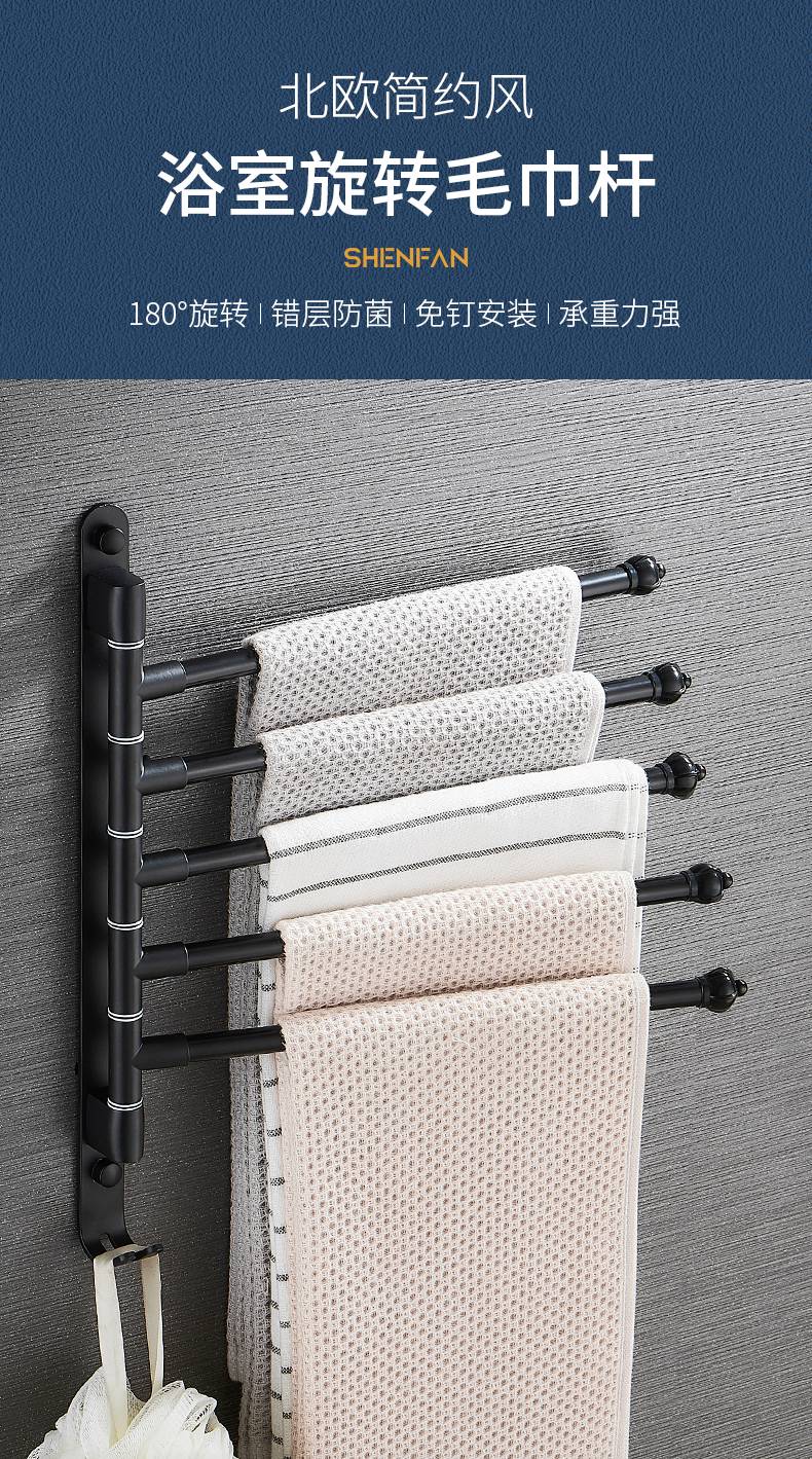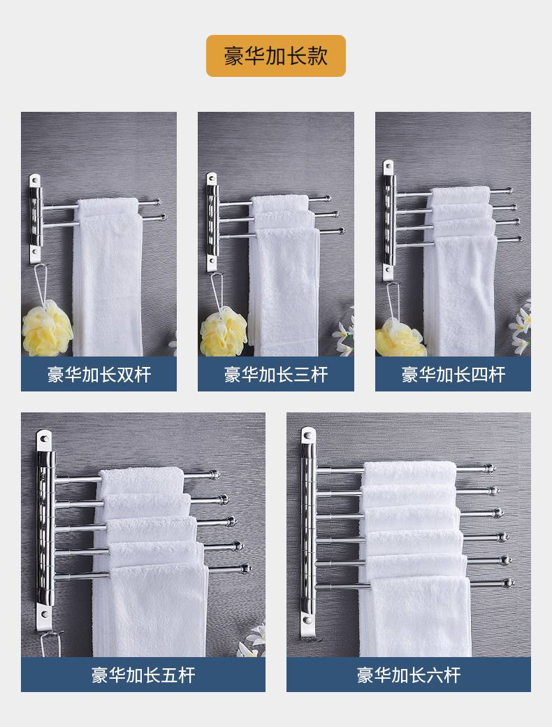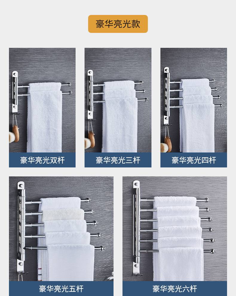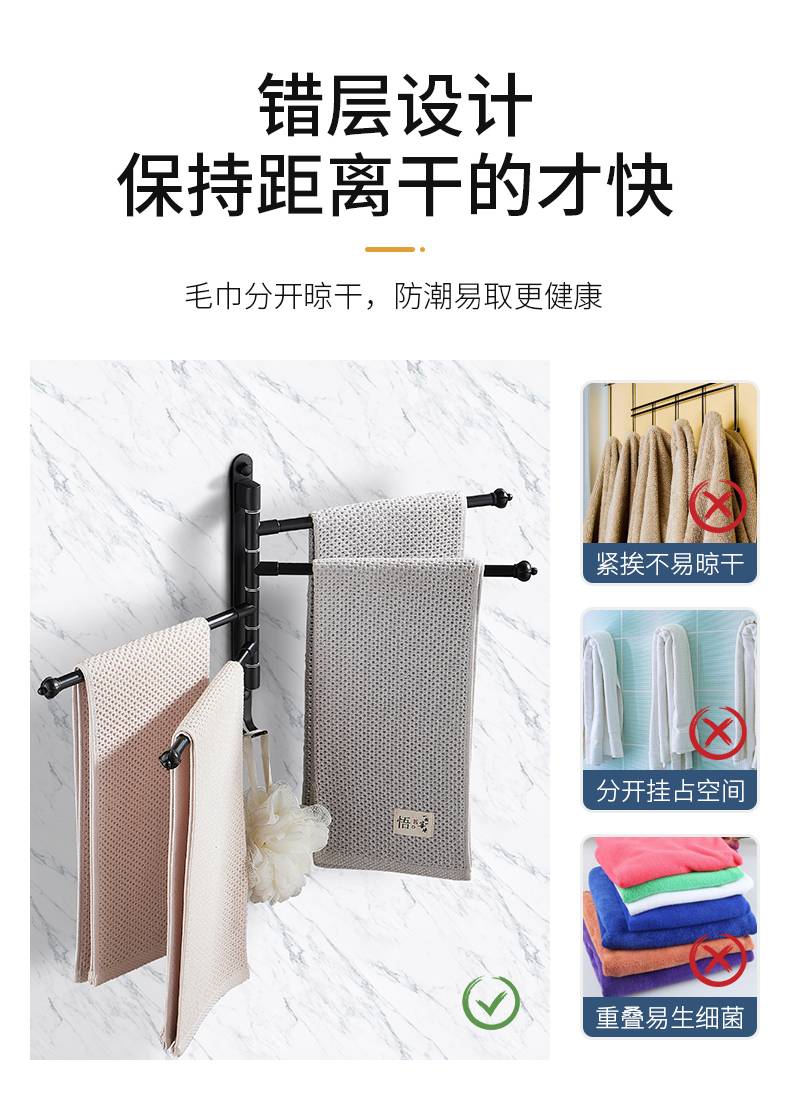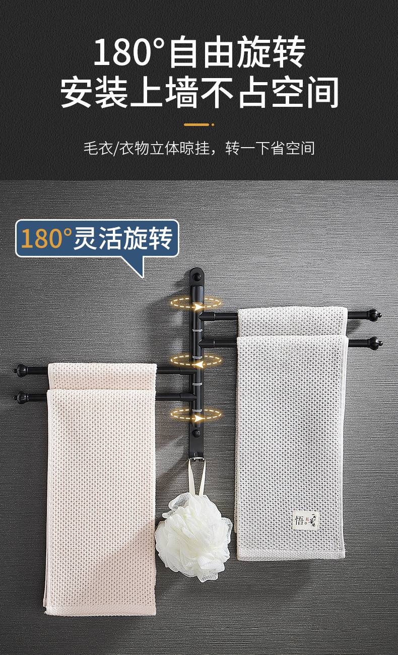 毛巾架免打孔不锈钢挂架卫生间浴室置物架旋转折叠晾毛巾神器多杆
