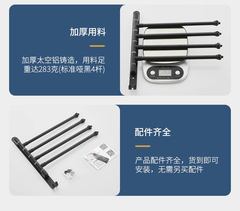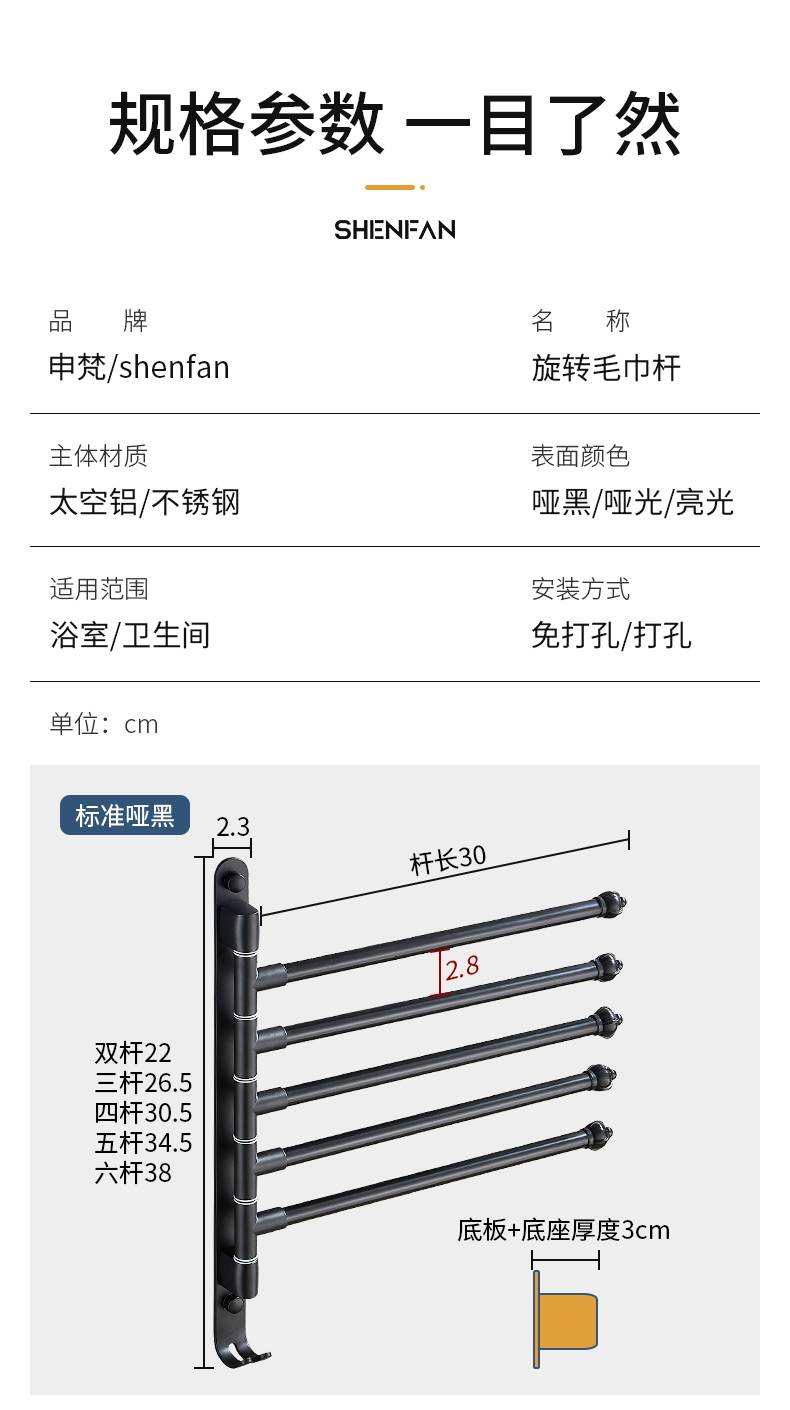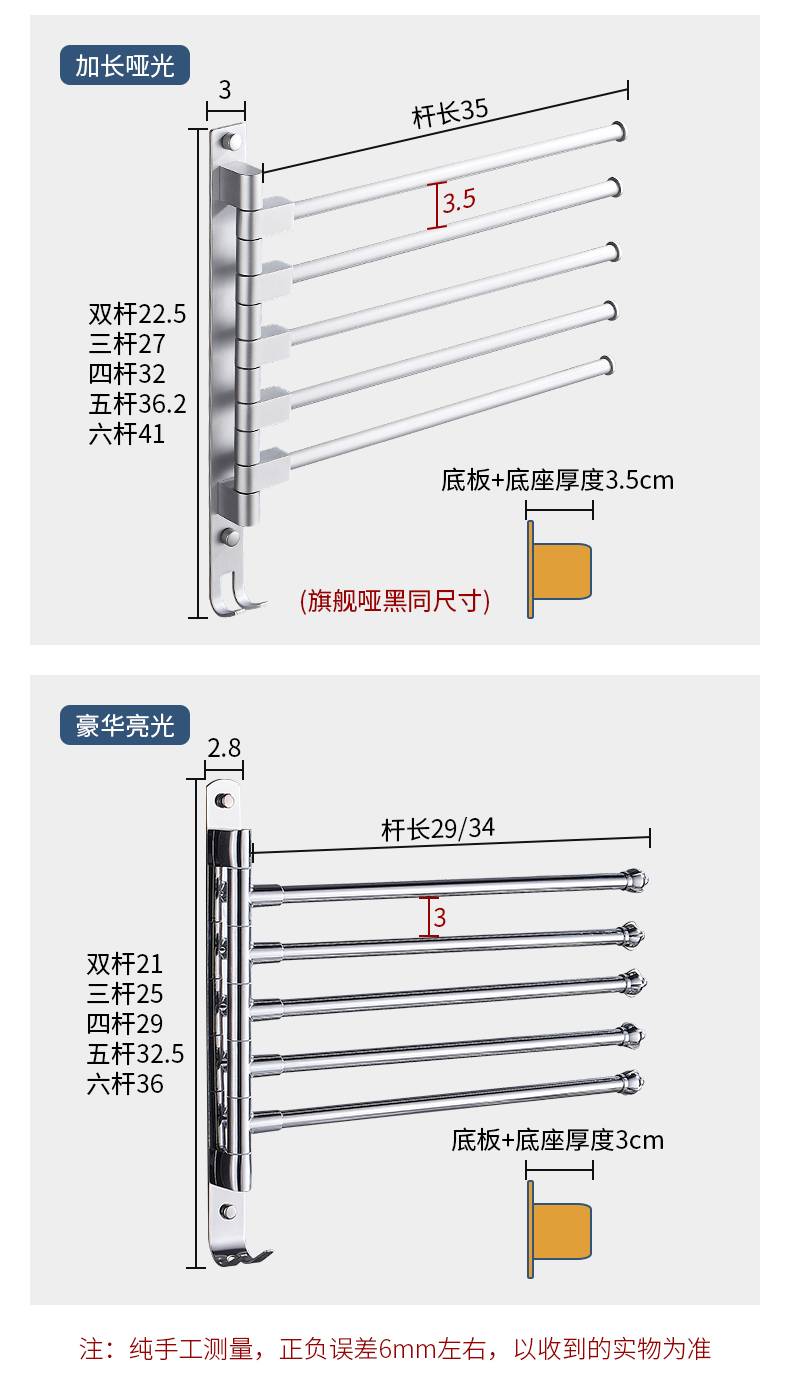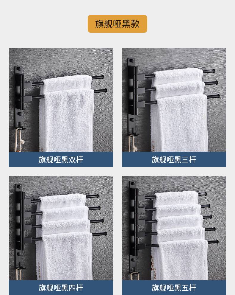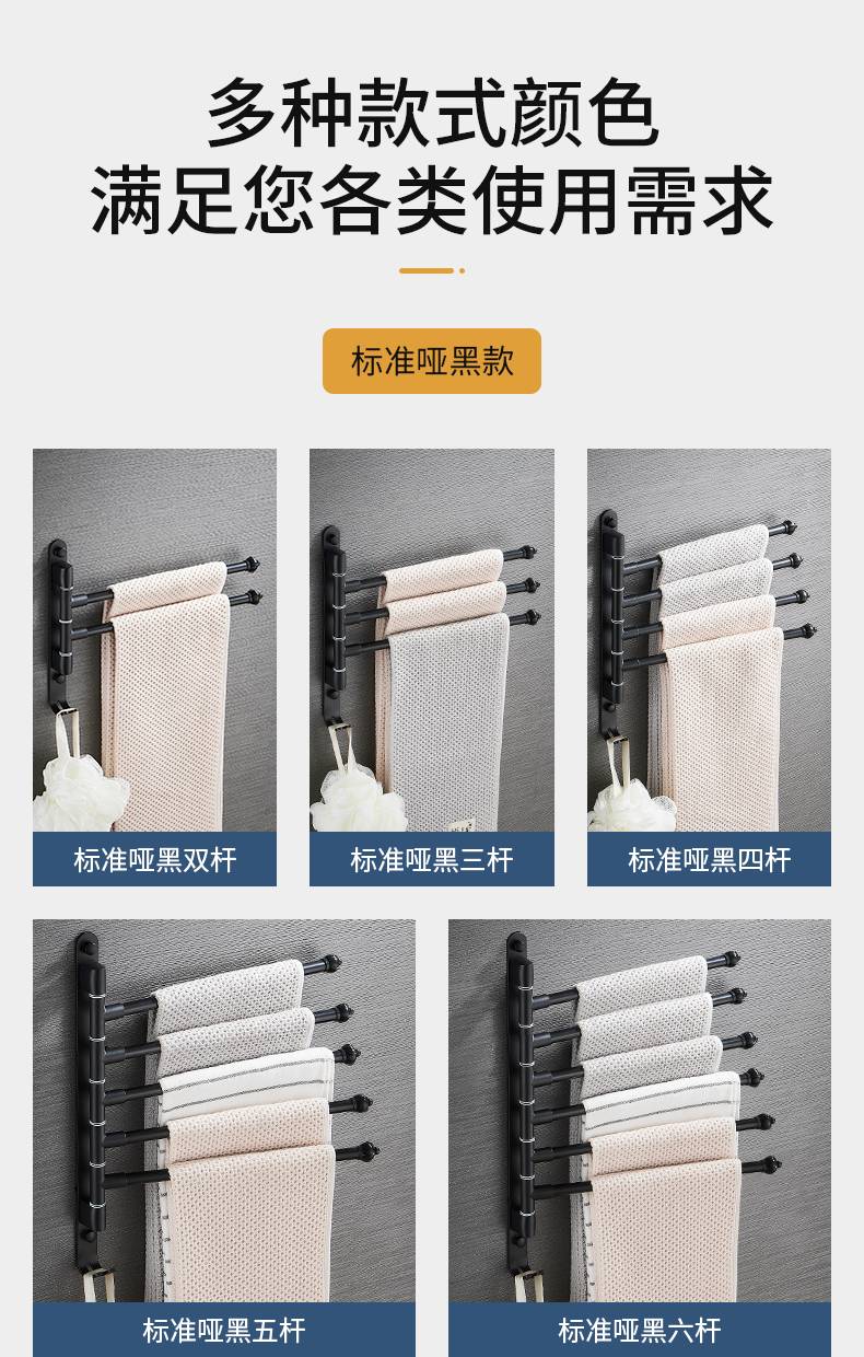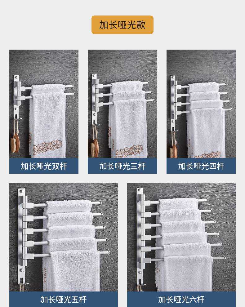 毛巾架免打孔不锈钢挂架卫生间浴室置物架旋转折叠晾毛巾神器多杆