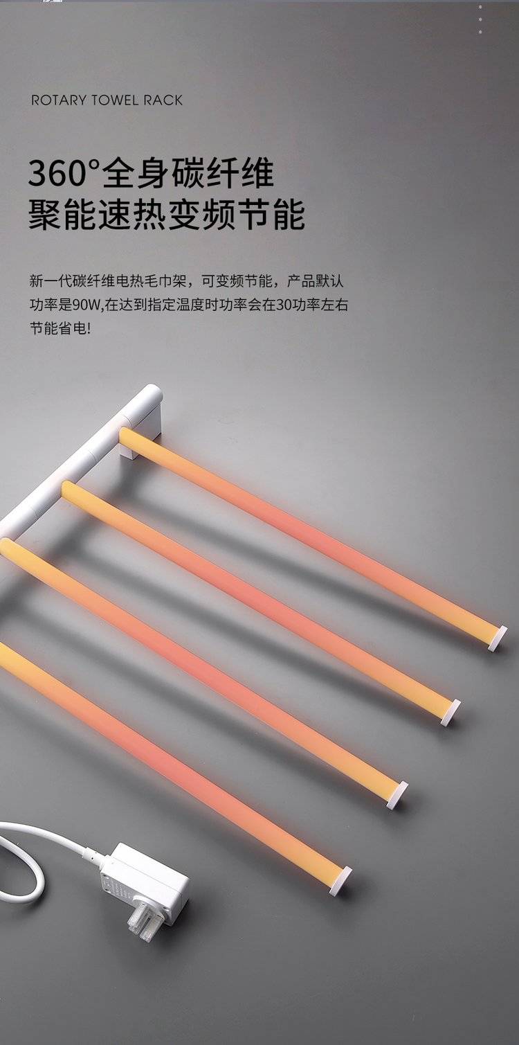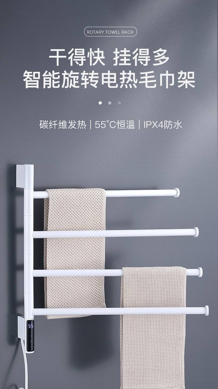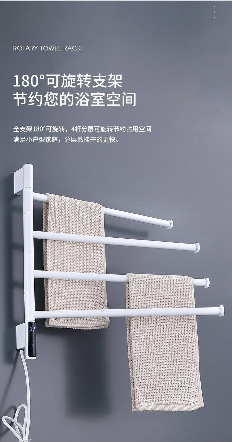 简约白色卫生间可旋转电热毛巾架浴室加热烘干浴巾架厕所置物架挂