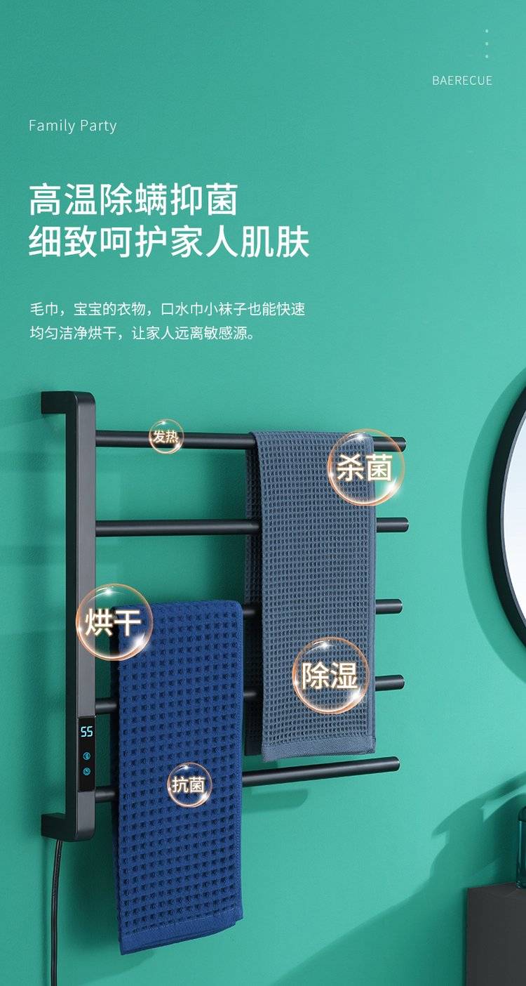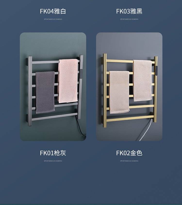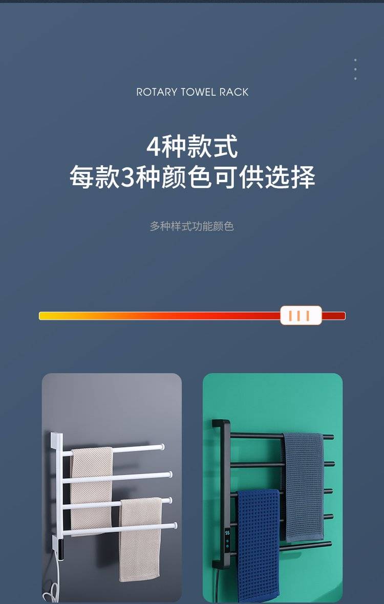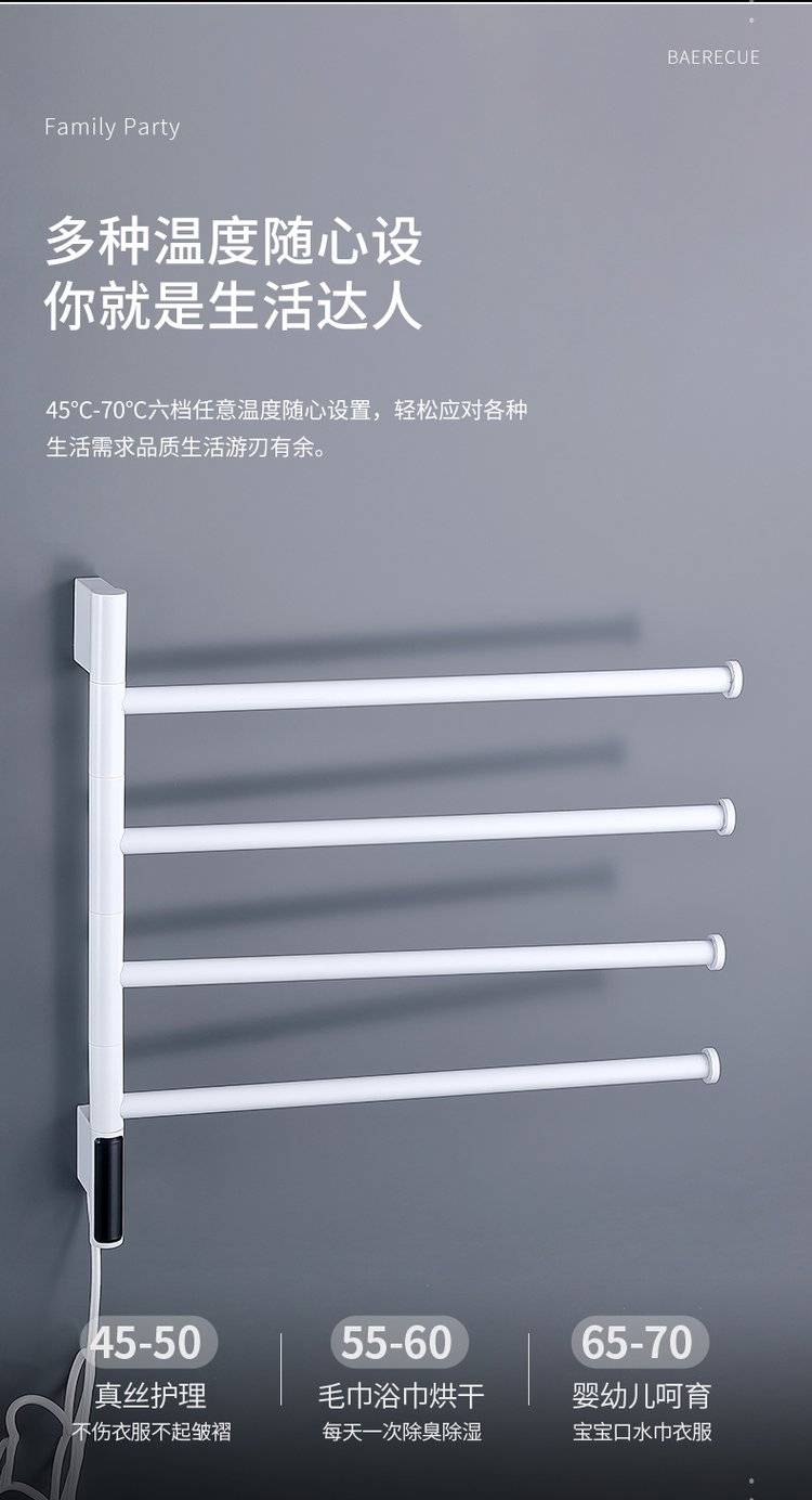 简约白色卫生间可旋转电热毛巾架浴室加热烘干浴巾架厕所置物架挂