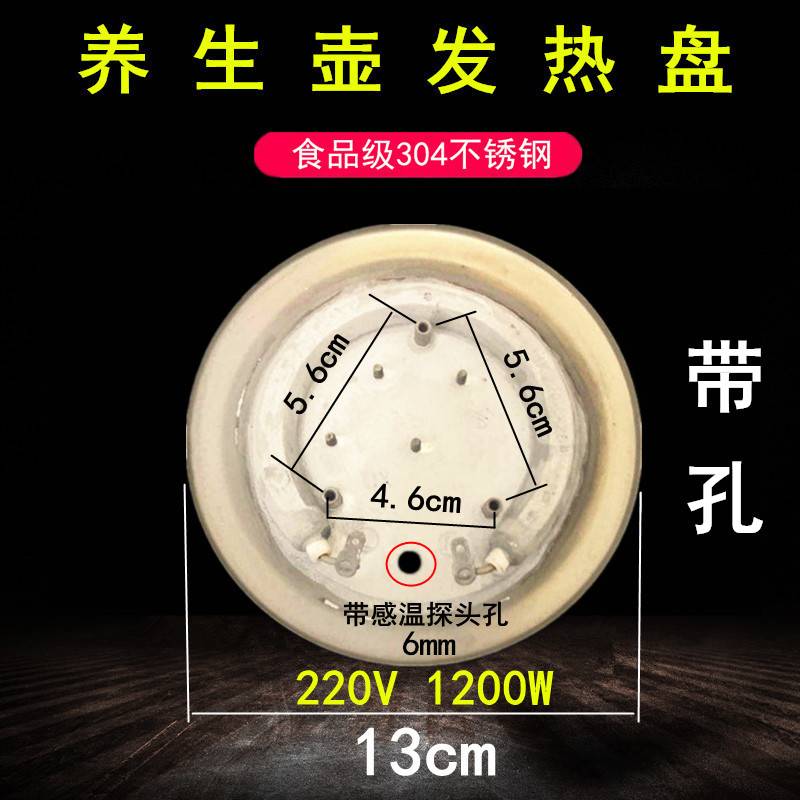 养生壶发热盘13cm电热水壶加热盘玻璃壶带孔电热盘220V 800W1200W