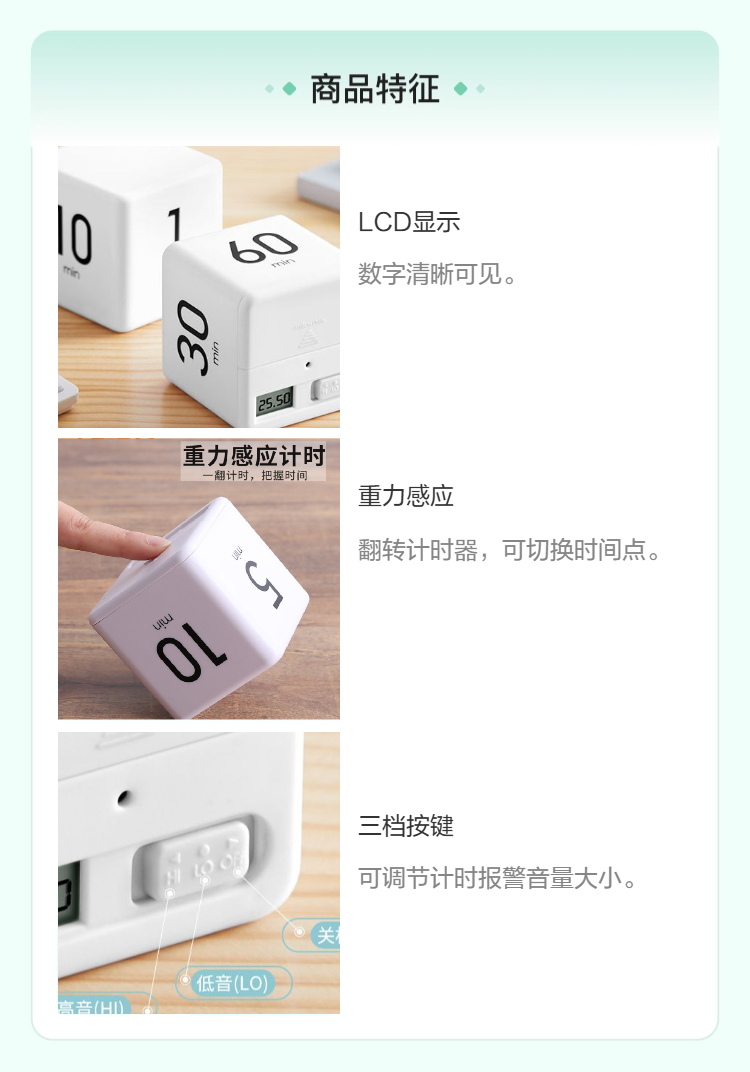 厨房定时器 方形高考倒计时器电子秒表 重力感应