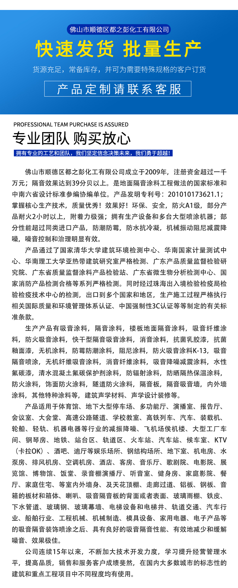 »金属板材隔音降噪阻尼涂料 汽车轮船用 减震保温性能稳定 都之彭