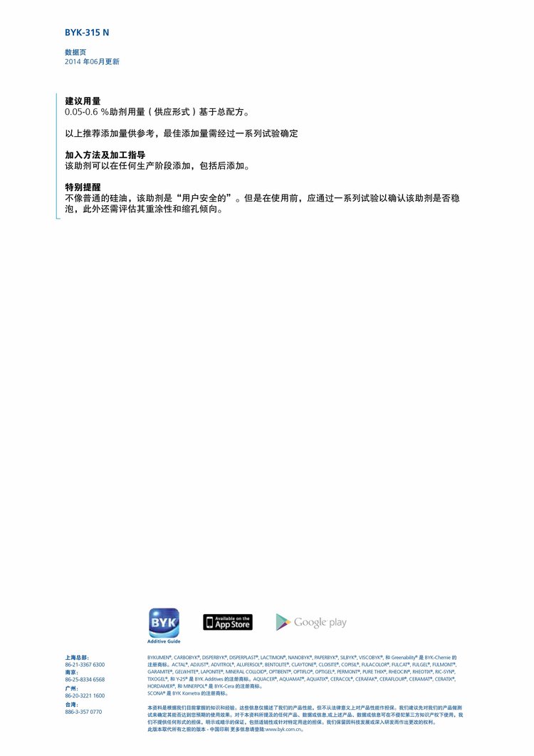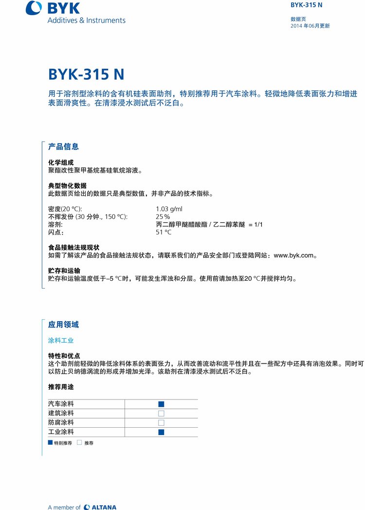 毕克BYK-315N 溶剂型润湿流平剂 汽车涂料 清漆浸水不泛白 增进滑爽性