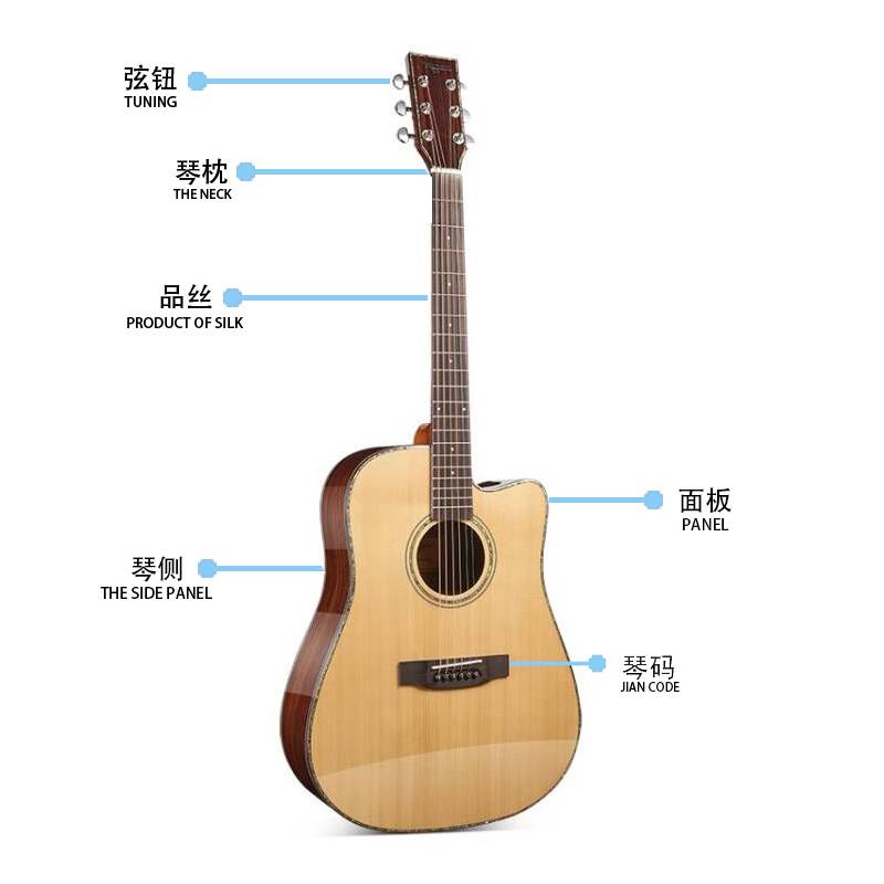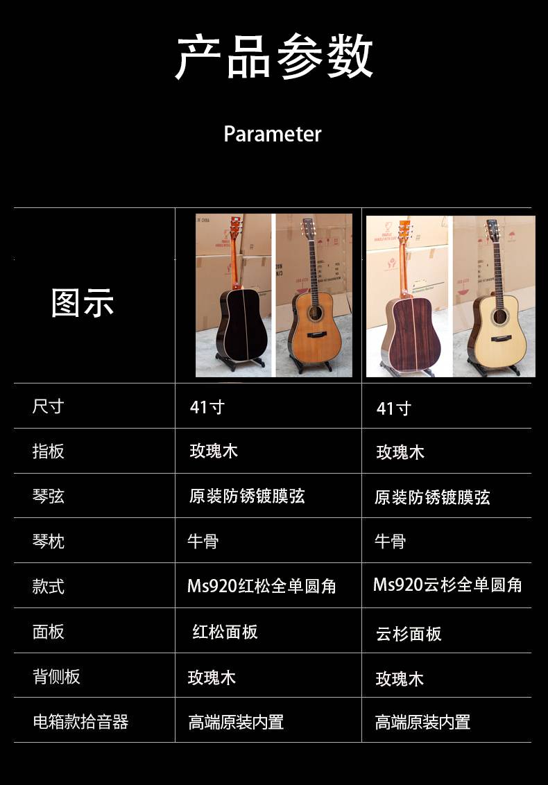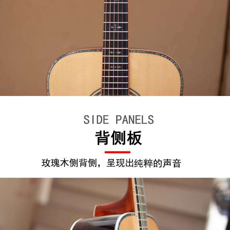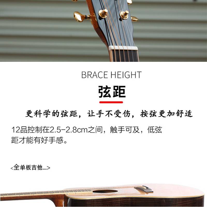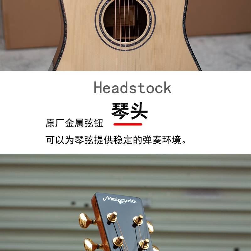 马丁密思41寸云杉木全单板圆角/缺角民谣吉他电箱款演奏进阶用