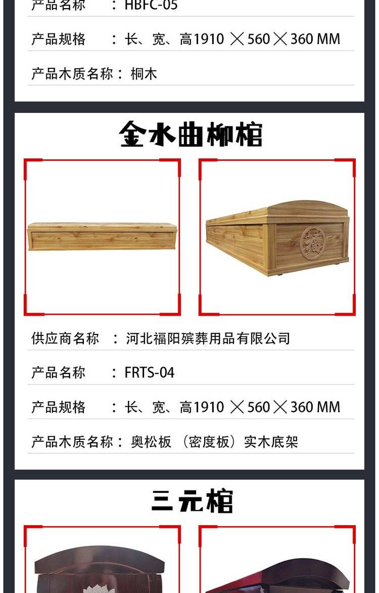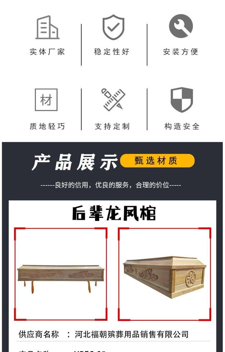 殡仪棺云杉木三元棺 新款丧葬用品 规格款式齐全 福阳