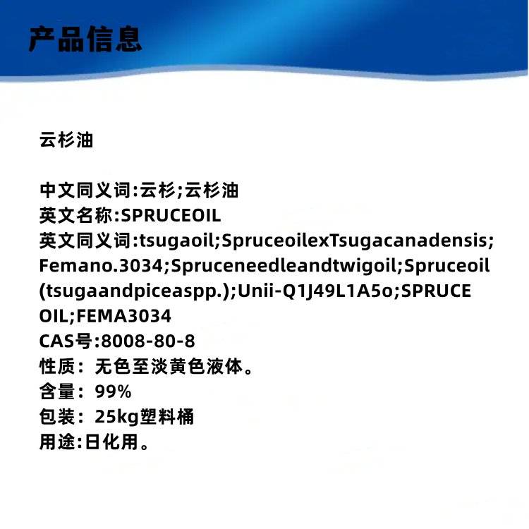 云杉油 CAS#8008-80-8 含量99% 克米克 1KG 25KG包装