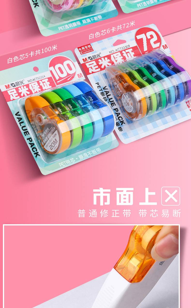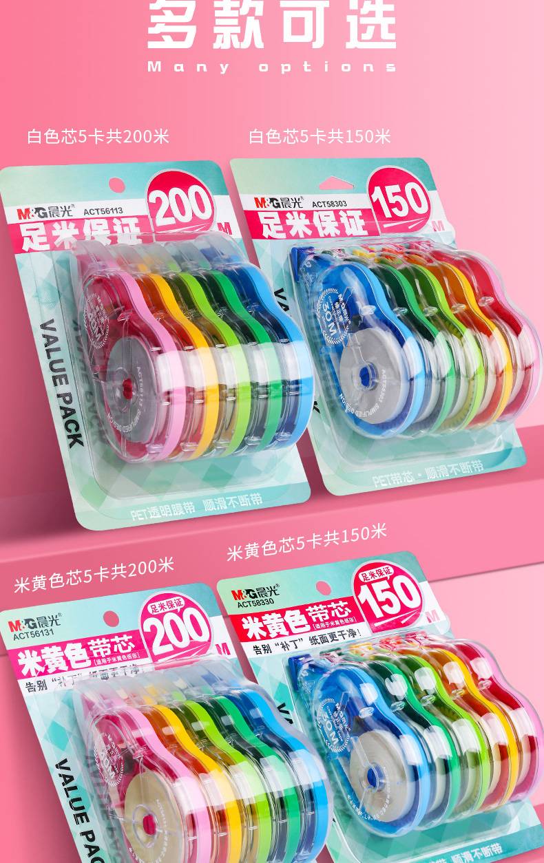 晨光200米修正带实惠装涂改带学生用30米大容量简约透明米黄色改正带女小学生初中生清新修改错带批发