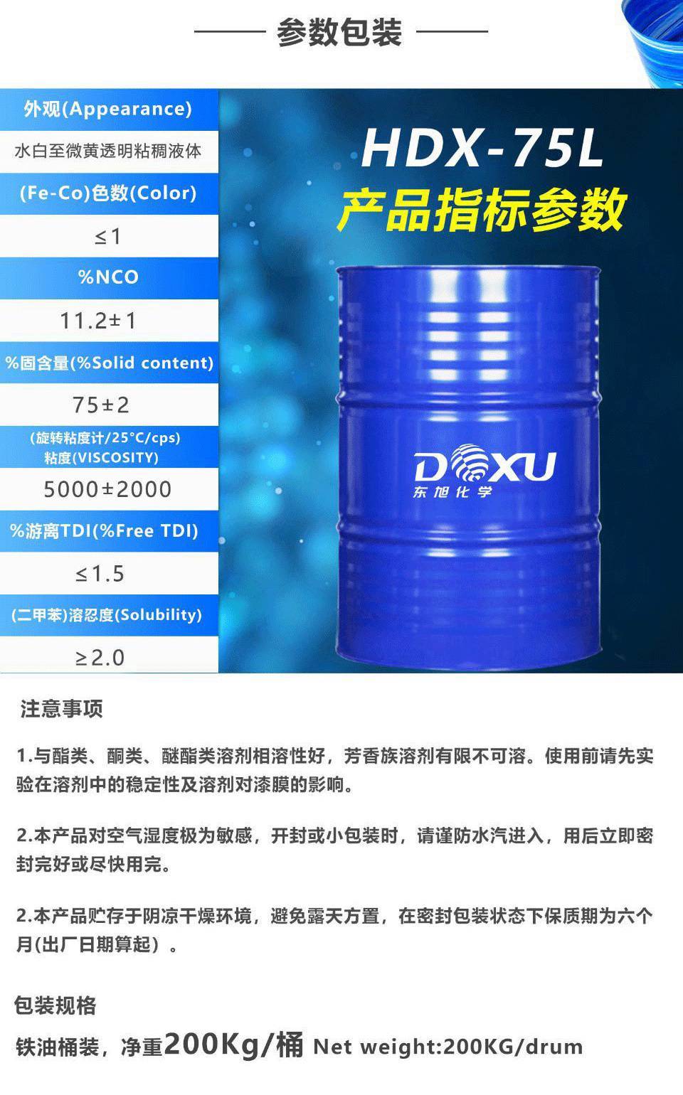 双组份油漆通用型高固含低游离PU固化剂HDX-75L