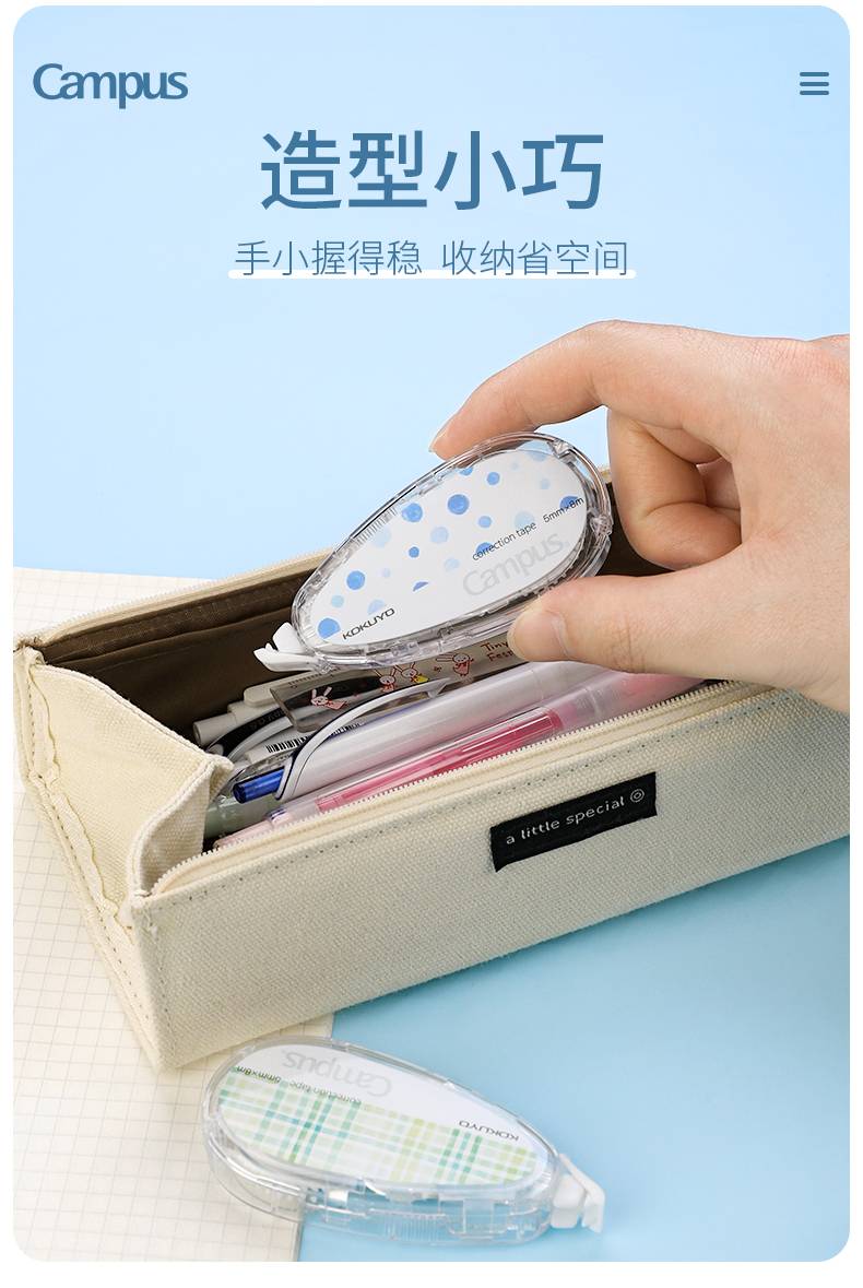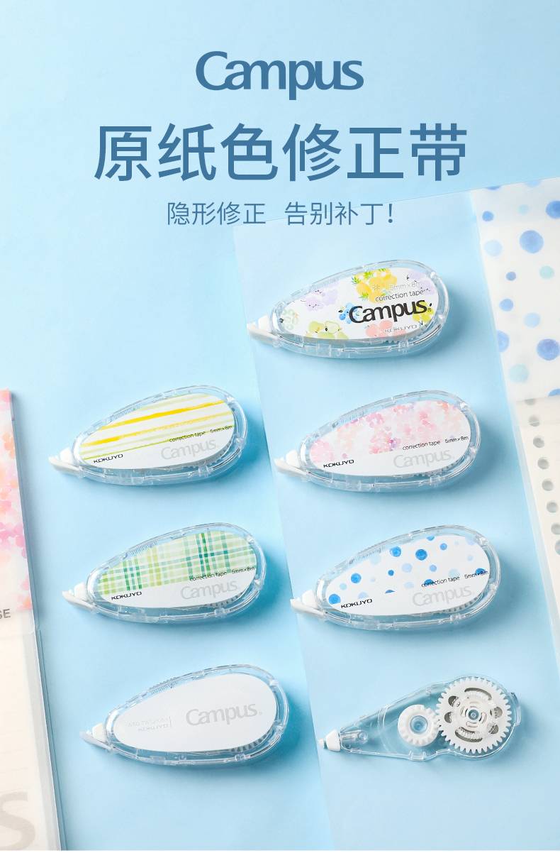 【2021新品】日本kokuyo国誉修正带campus原纸色隐形涂改带可替换芯小学生用初中生大容量改错带改正带内替芯