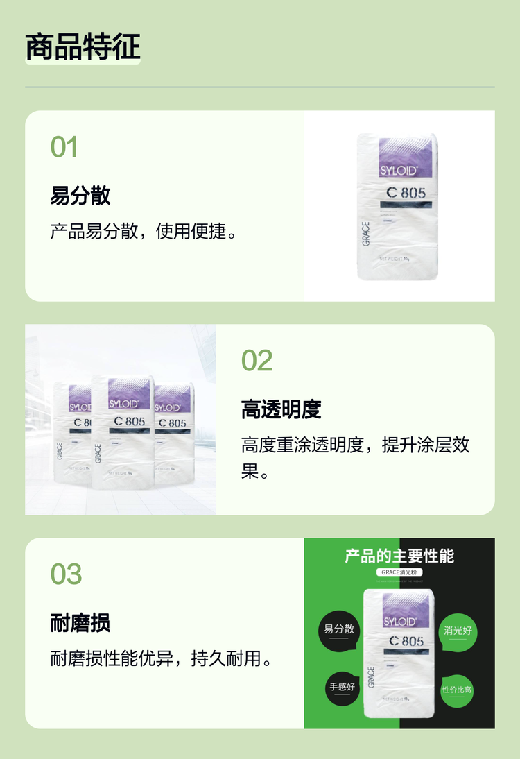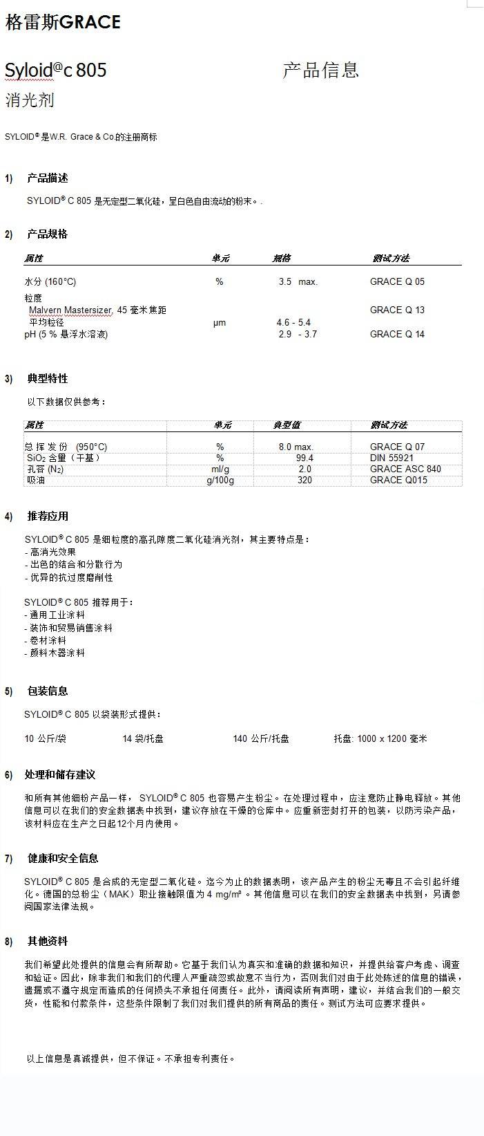 GRACE格雷斯 SYLOID C805消光粉 通用工业涂料,木器漆,卷材涂料