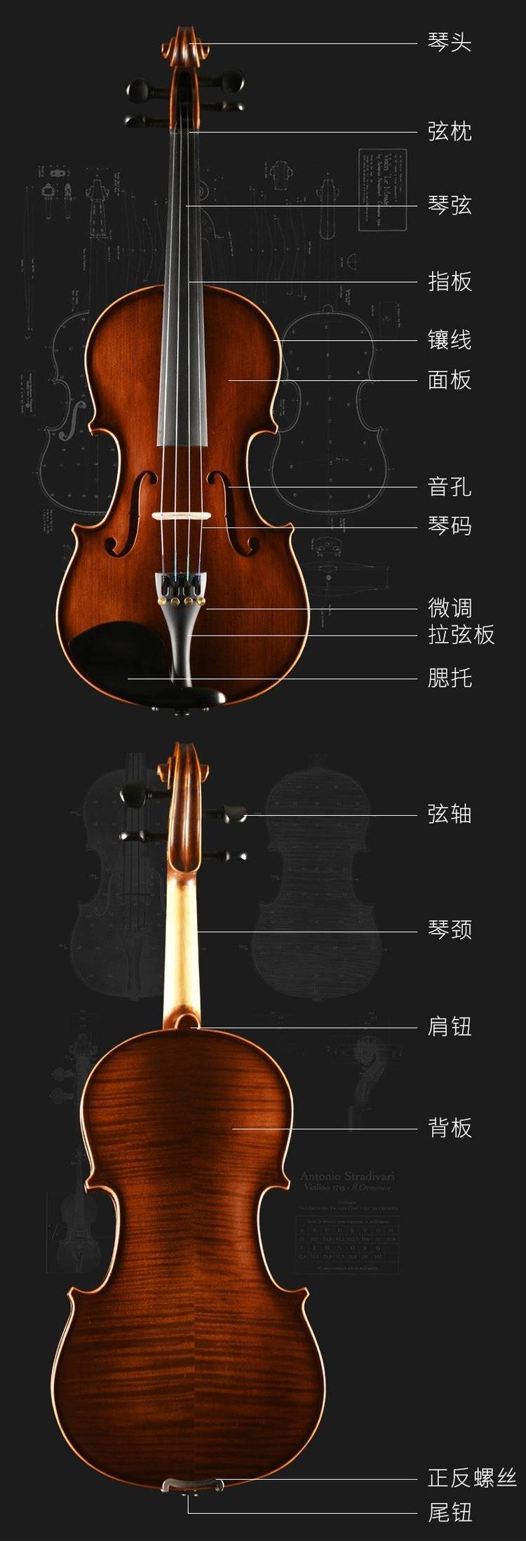 浩成小提琴云杉木面板天然枫木背板实木小提琴演奏考级初学者