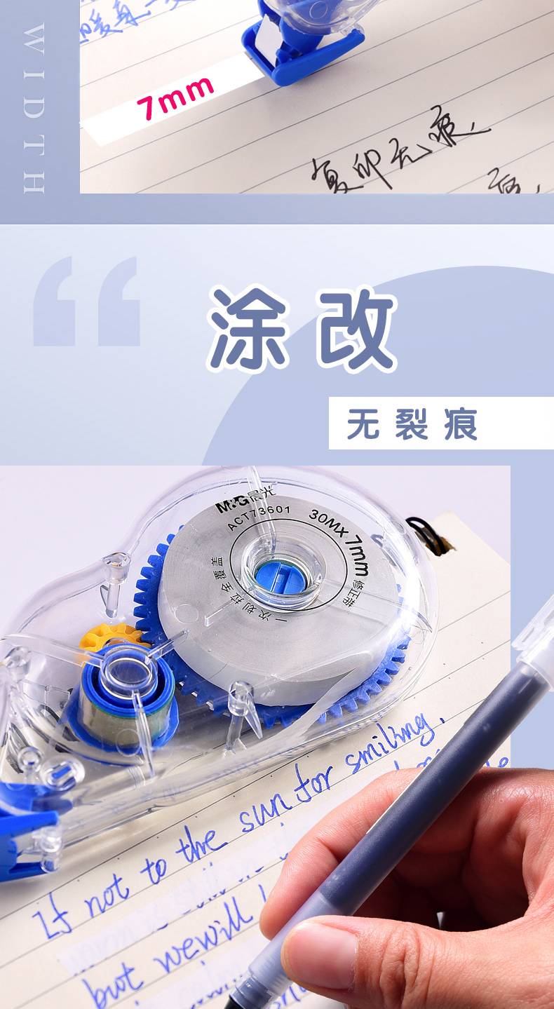 晨光修正带实惠装加宽7mm涂改带学生用修改带大容量改正带顺滑改错带可爱少女有透明更正带文具用品批发