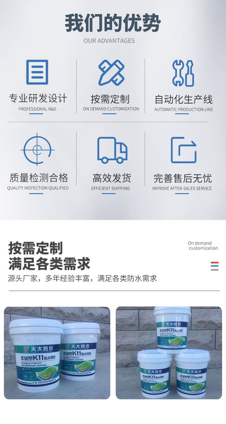 k11防水涂料 通用柔韧性防水浆料 水池隧道卫生间用 防水抗渗 天太