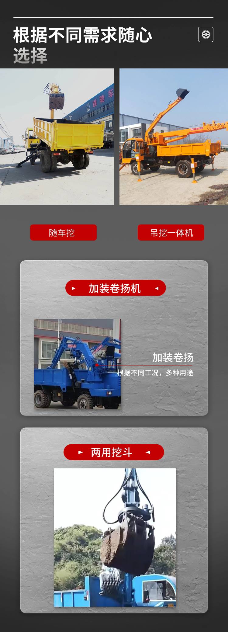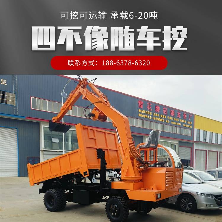 轮式四不像挖机一体车 园林移树多功能随车挖 带自卸运输挖掘机