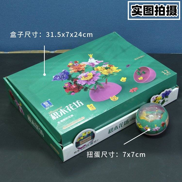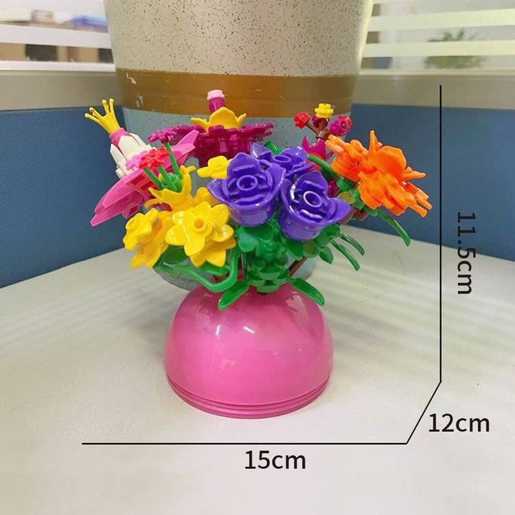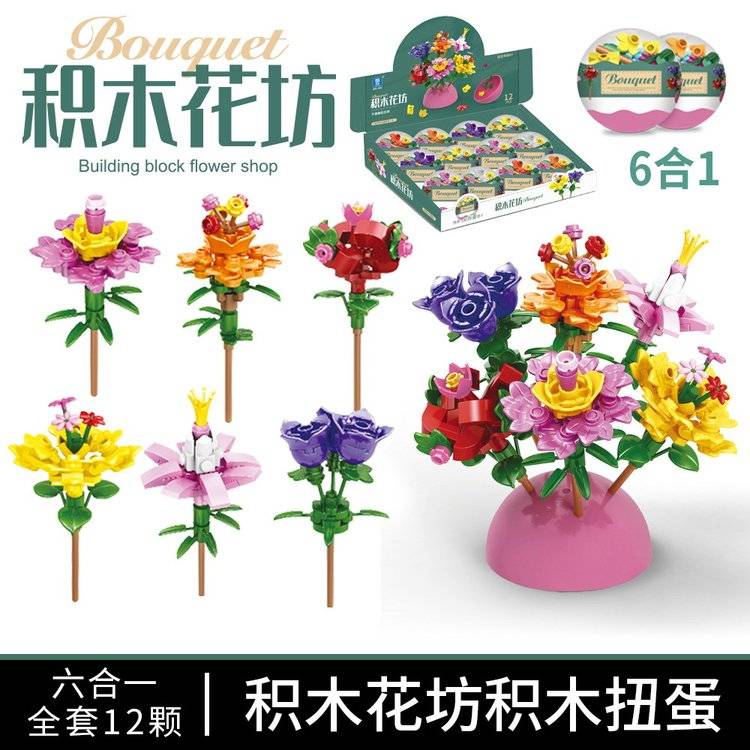 永生花束扭蛋 情人节礼物 玫瑰小颗粒积木 益智拼装玩具