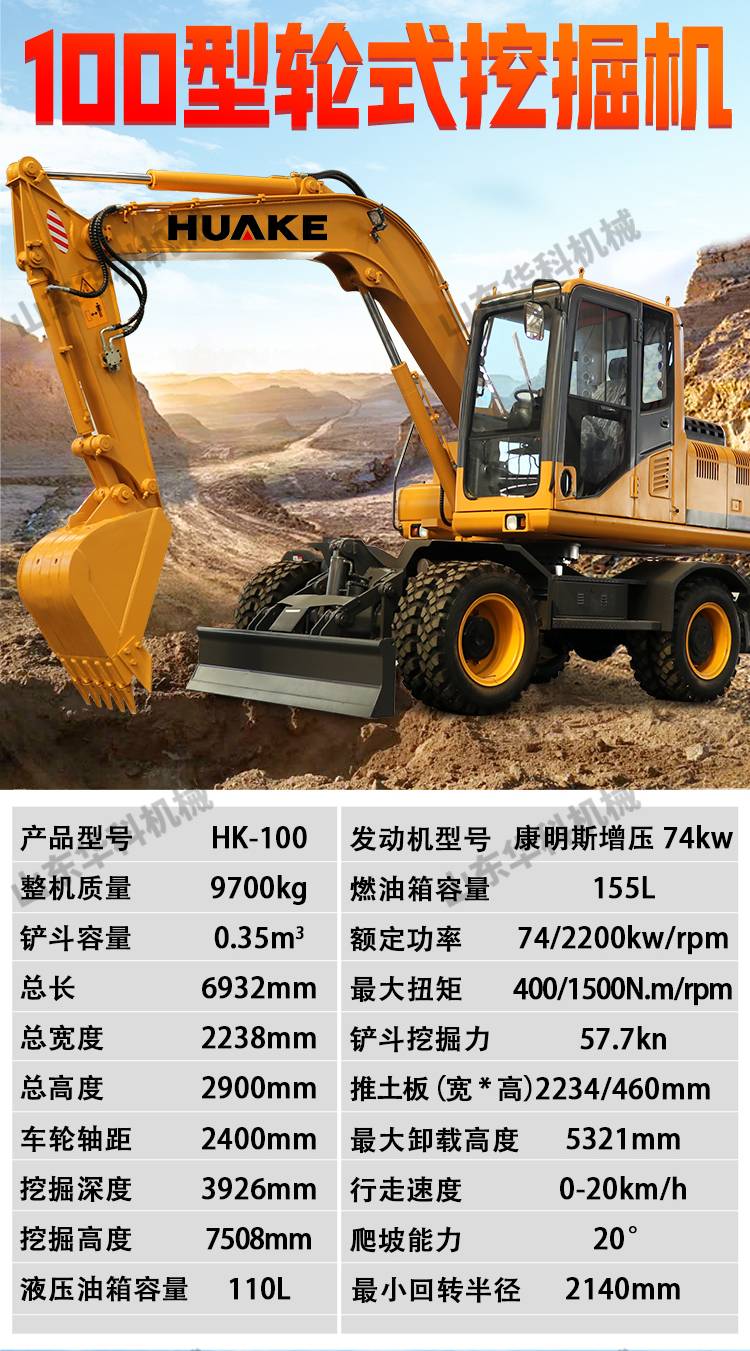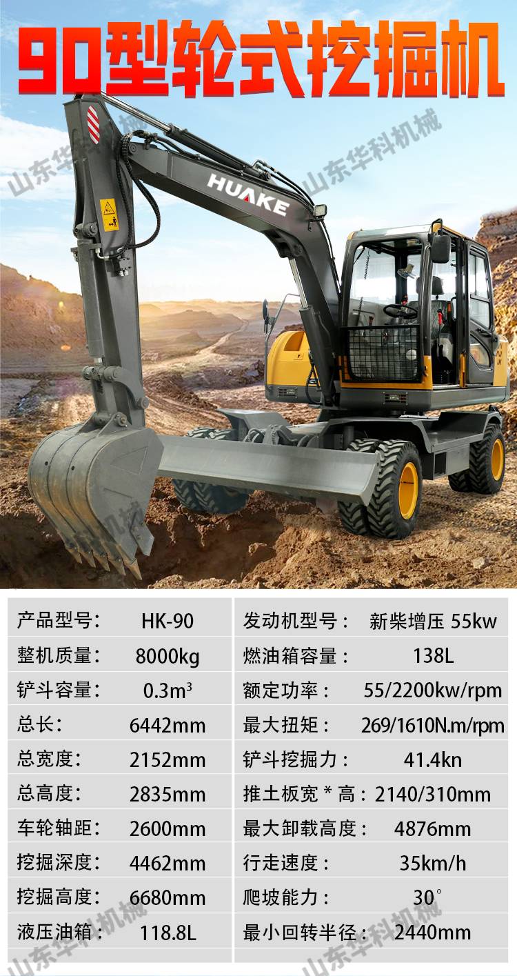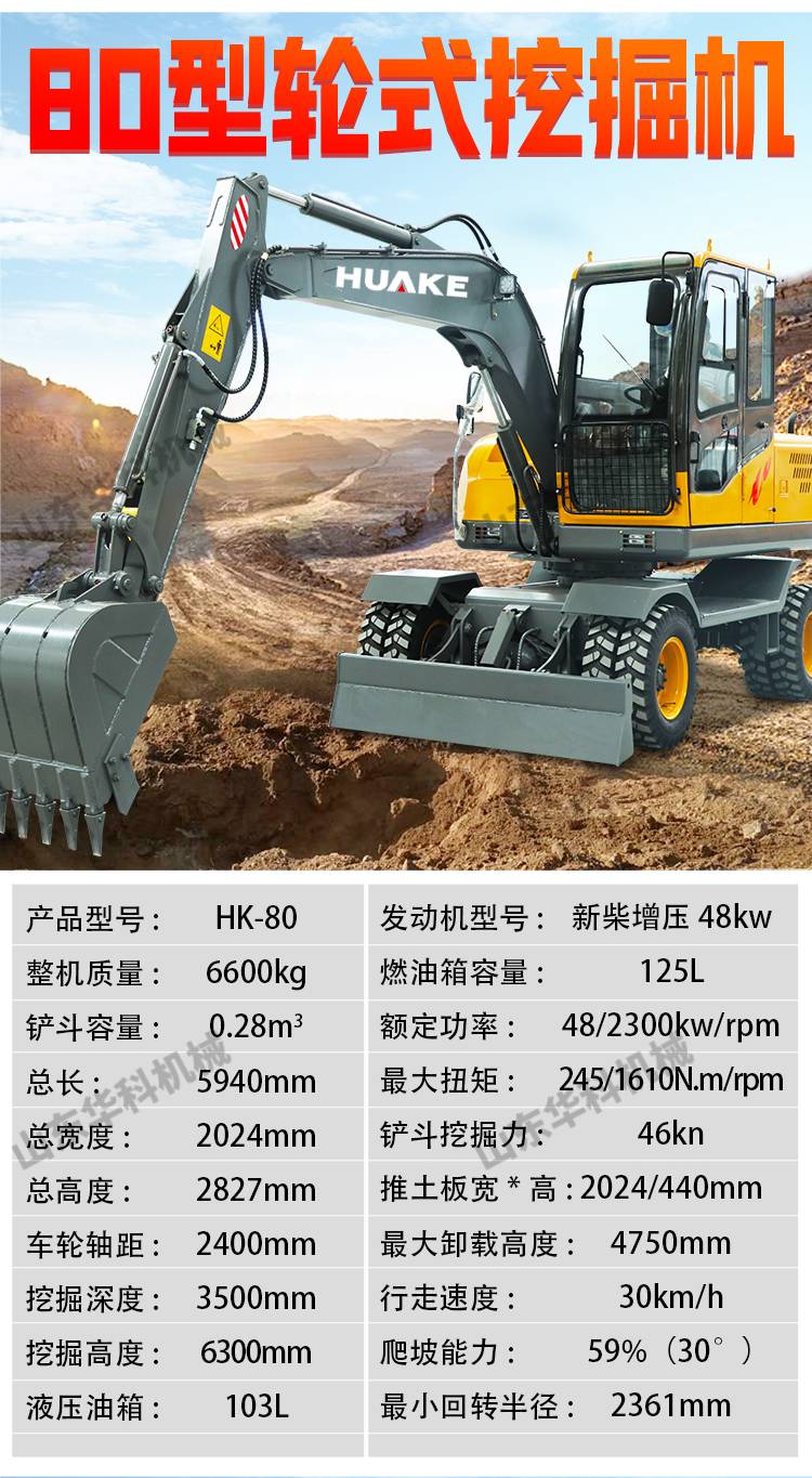 轮式挖掘机四驱市政修路小型果园挖土机轮挖抓木机