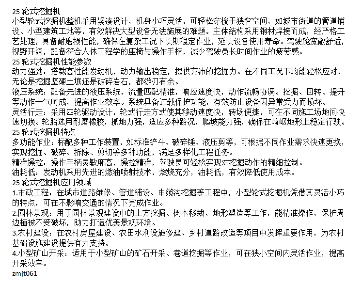 25轮式挖掘机 机身小巧灵活 搭载高性能发动机 动力输出稳定