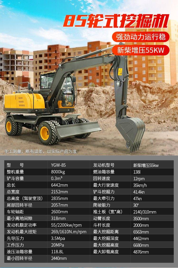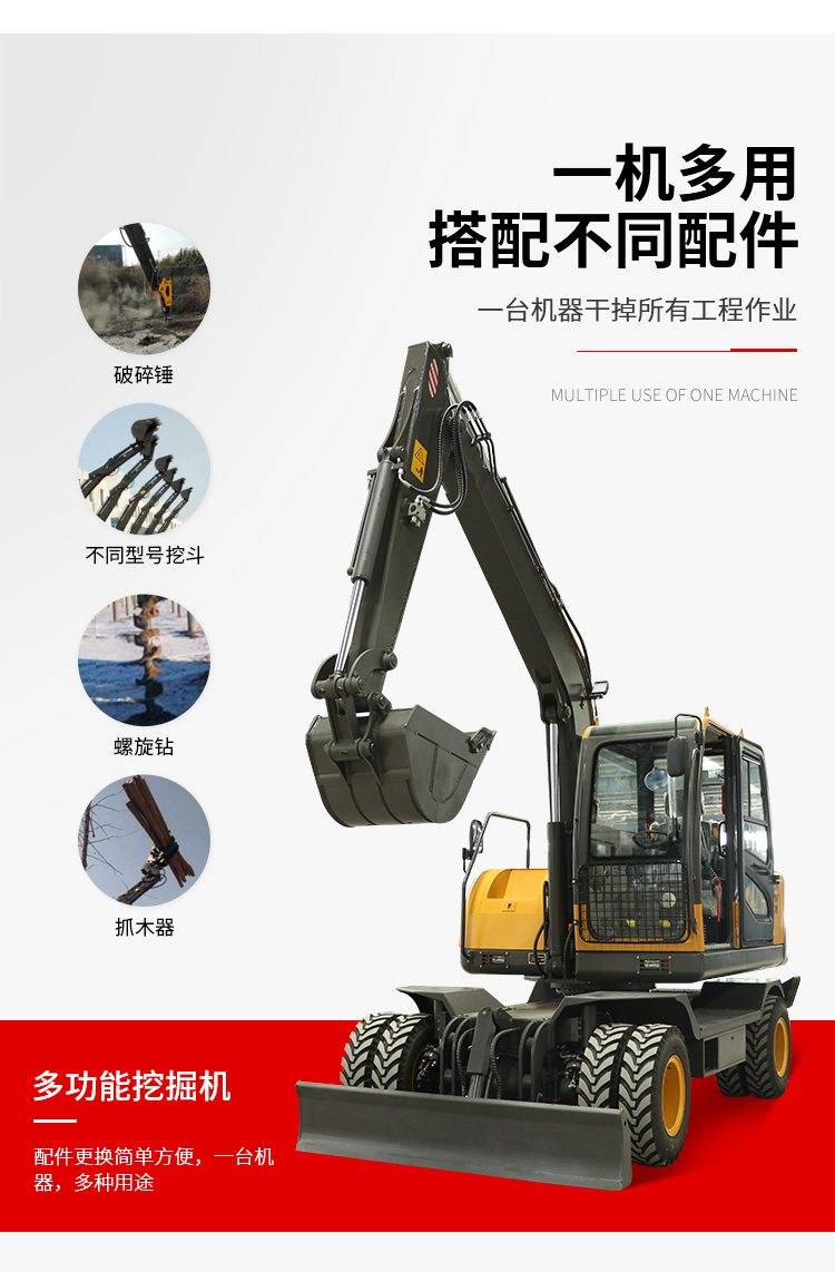轮式挖掘机小型80型农用挖土机工程施工轮挖带驾驶室