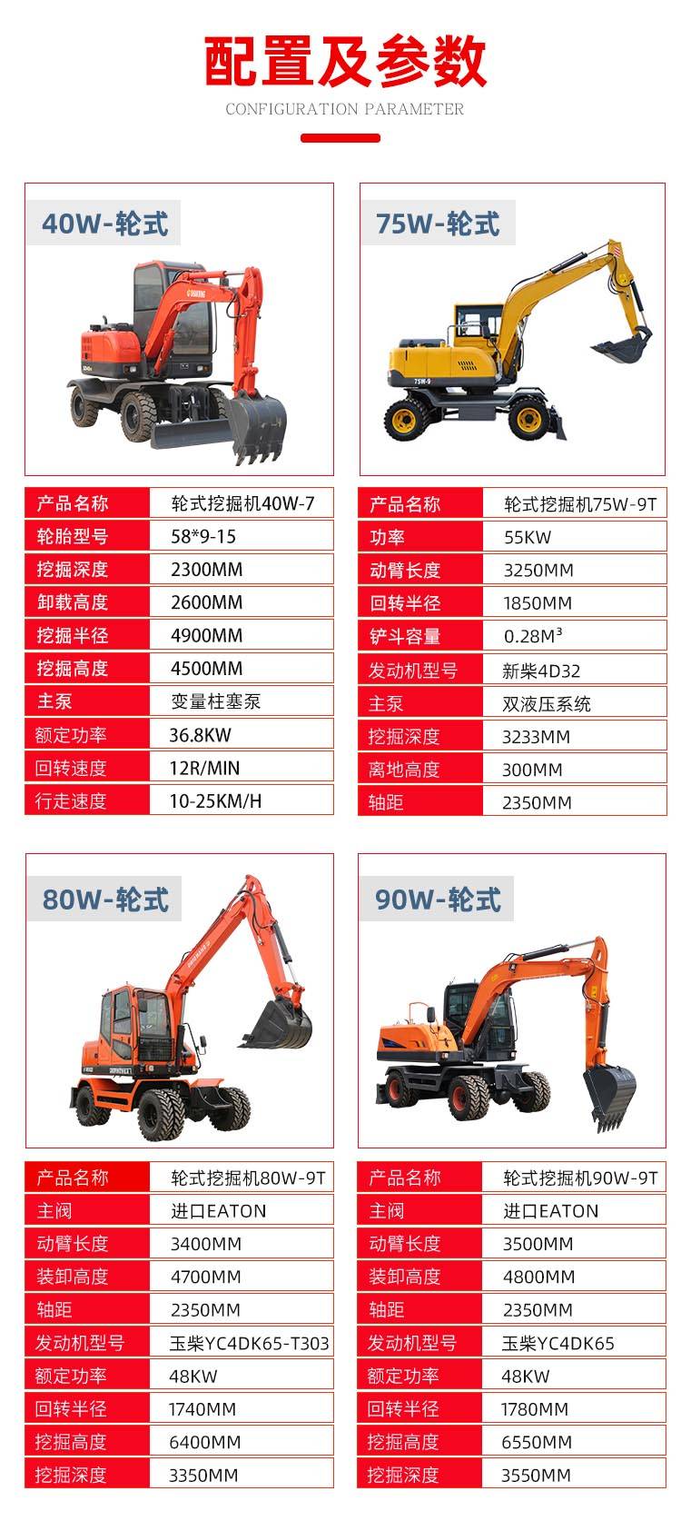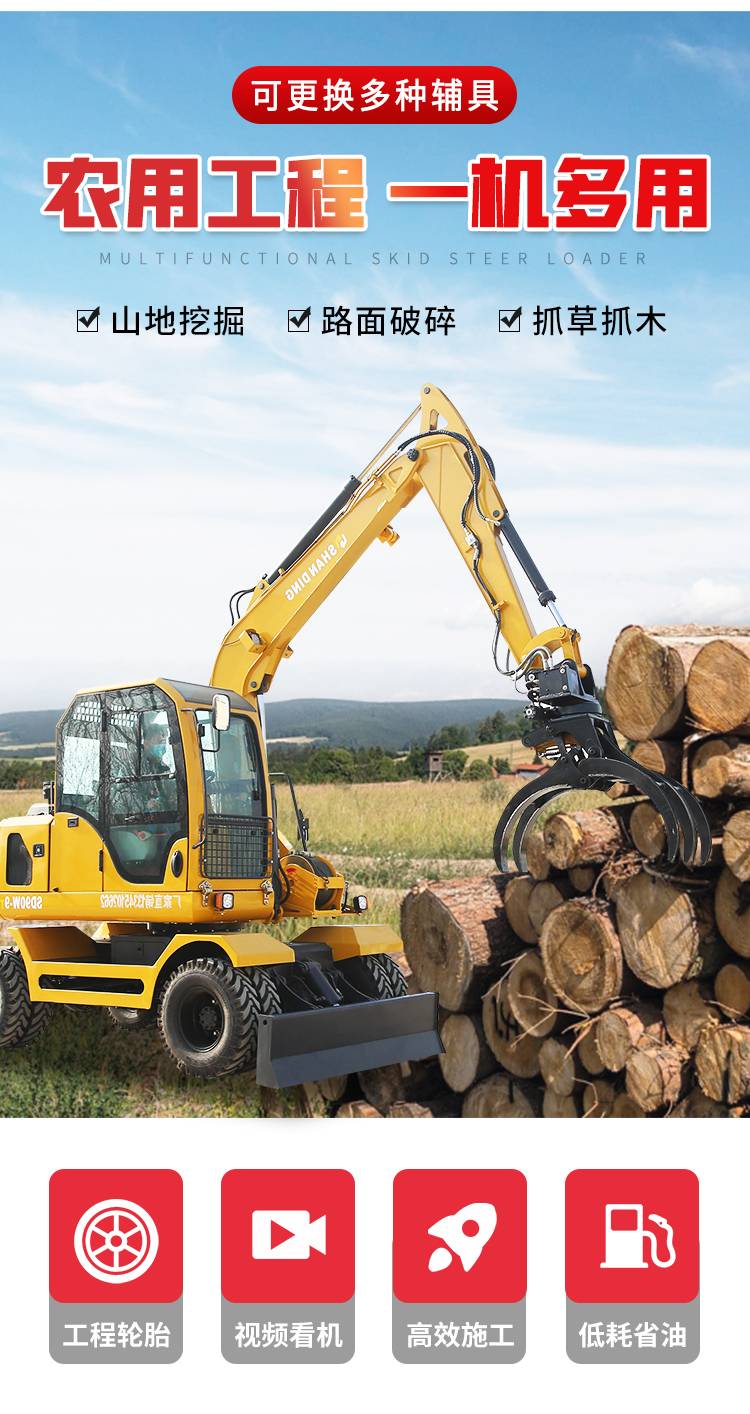 轮式挖掘机市政工程 多功能小型挖机 四轮60型挖勾机