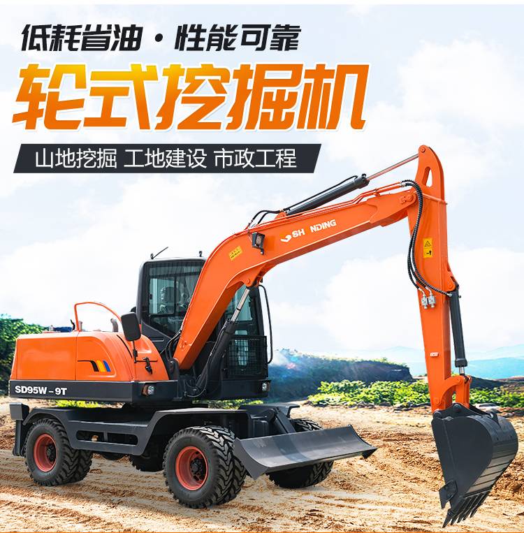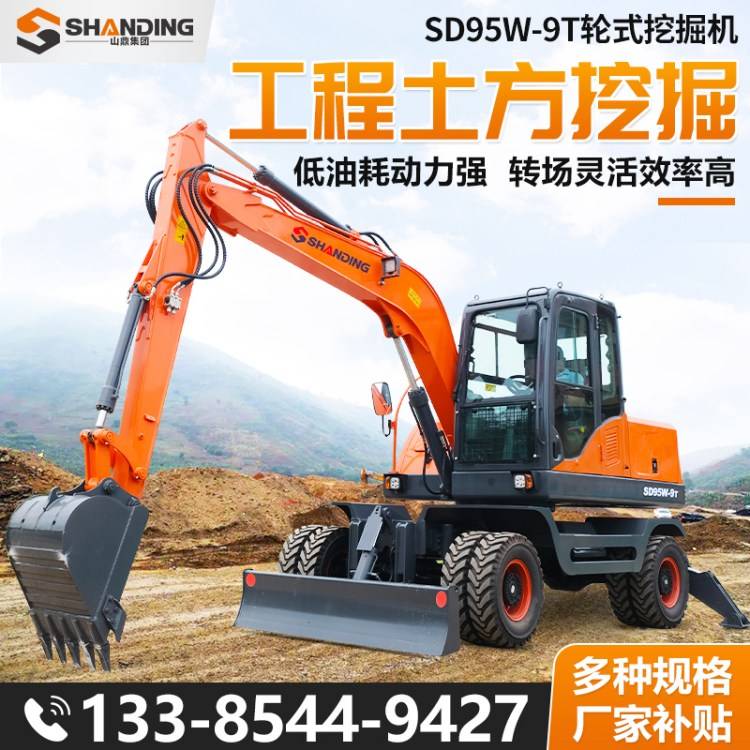135W轮式挖掘机工程施工挖机农村改造农田挖沟机工地挖土机
