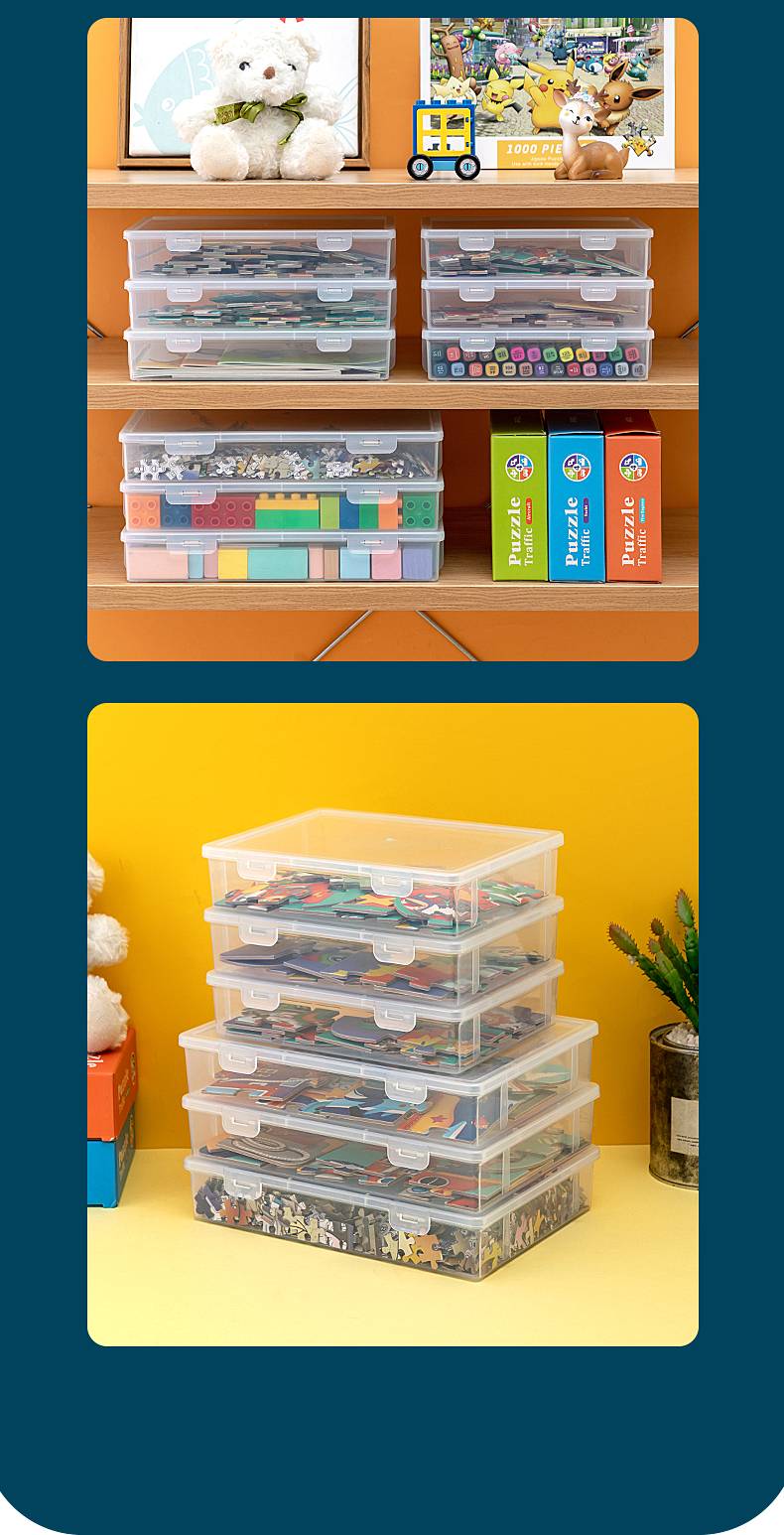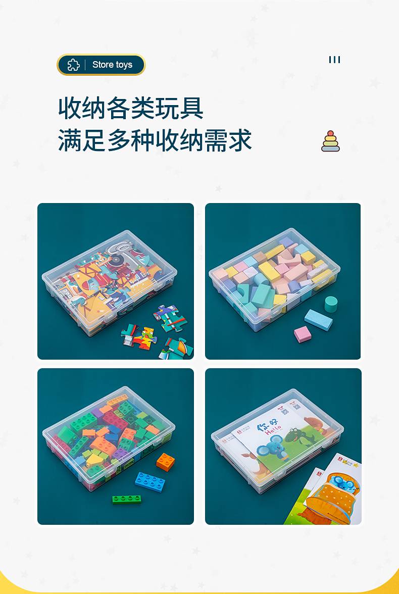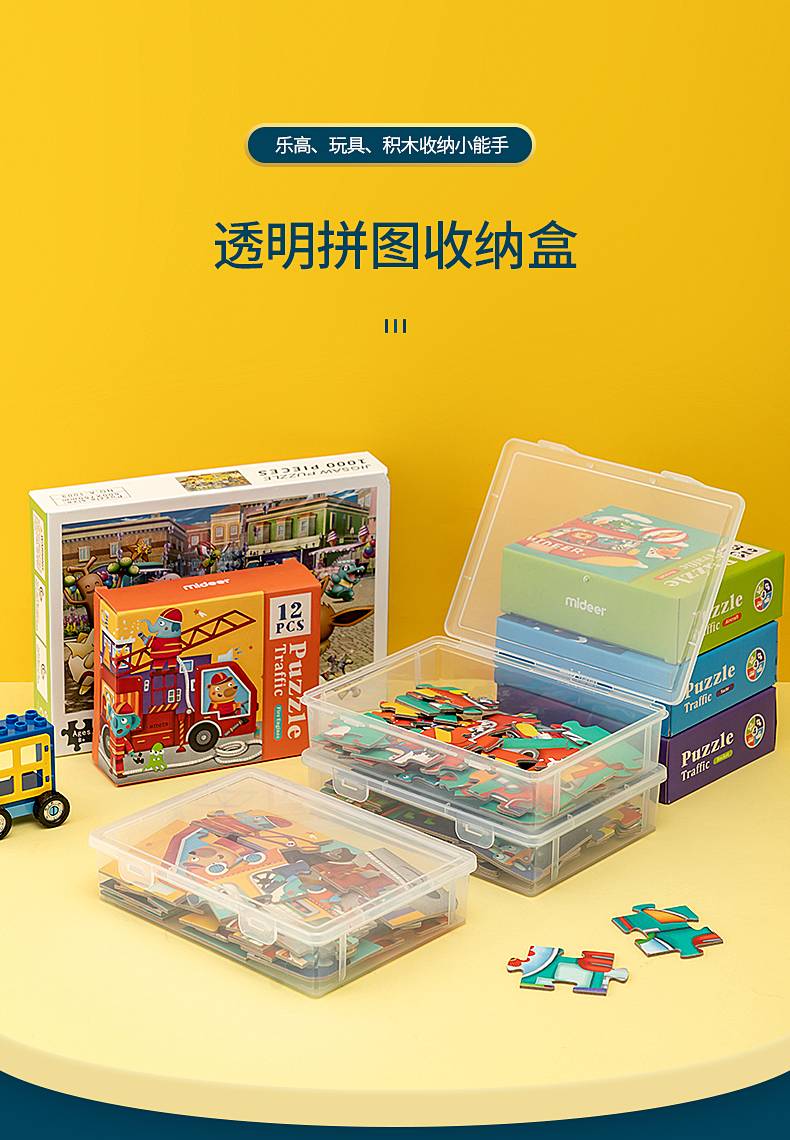 拼图收纳盒乐高玩具积木分类箱透明儿童零件小颗粒拼装分装整理盒