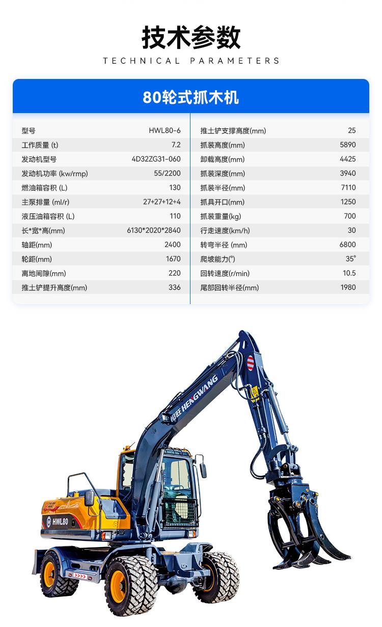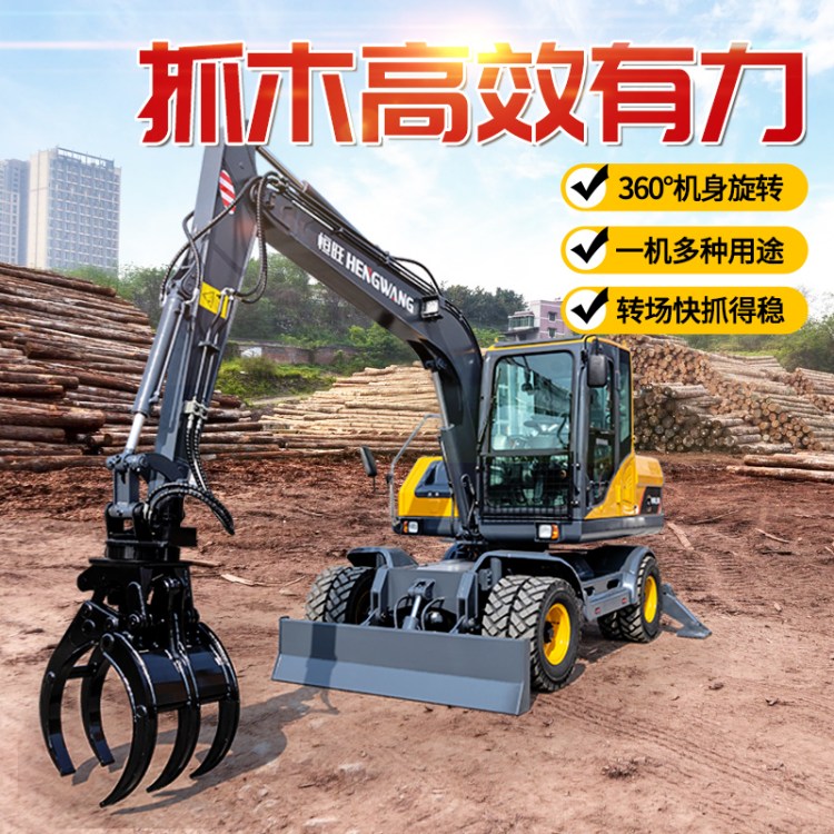 90轮式挖掘机 抓木 + 行走一体 市政清障 / 装卸木头 厂家现货 快速发货