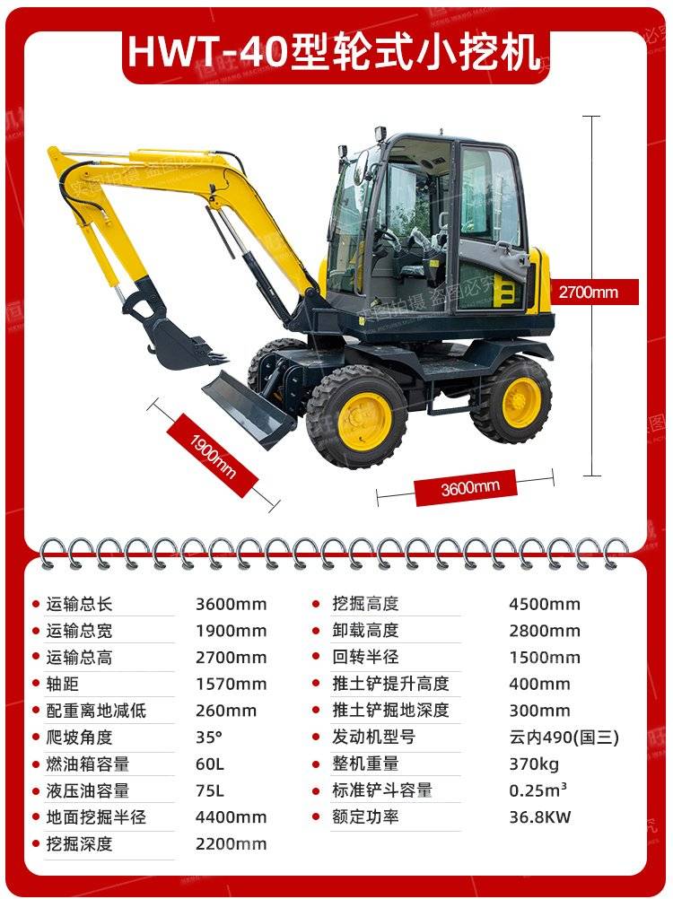 小型轮式挖掘机 HWL-40轮挖可搭载360°旋转抓木机