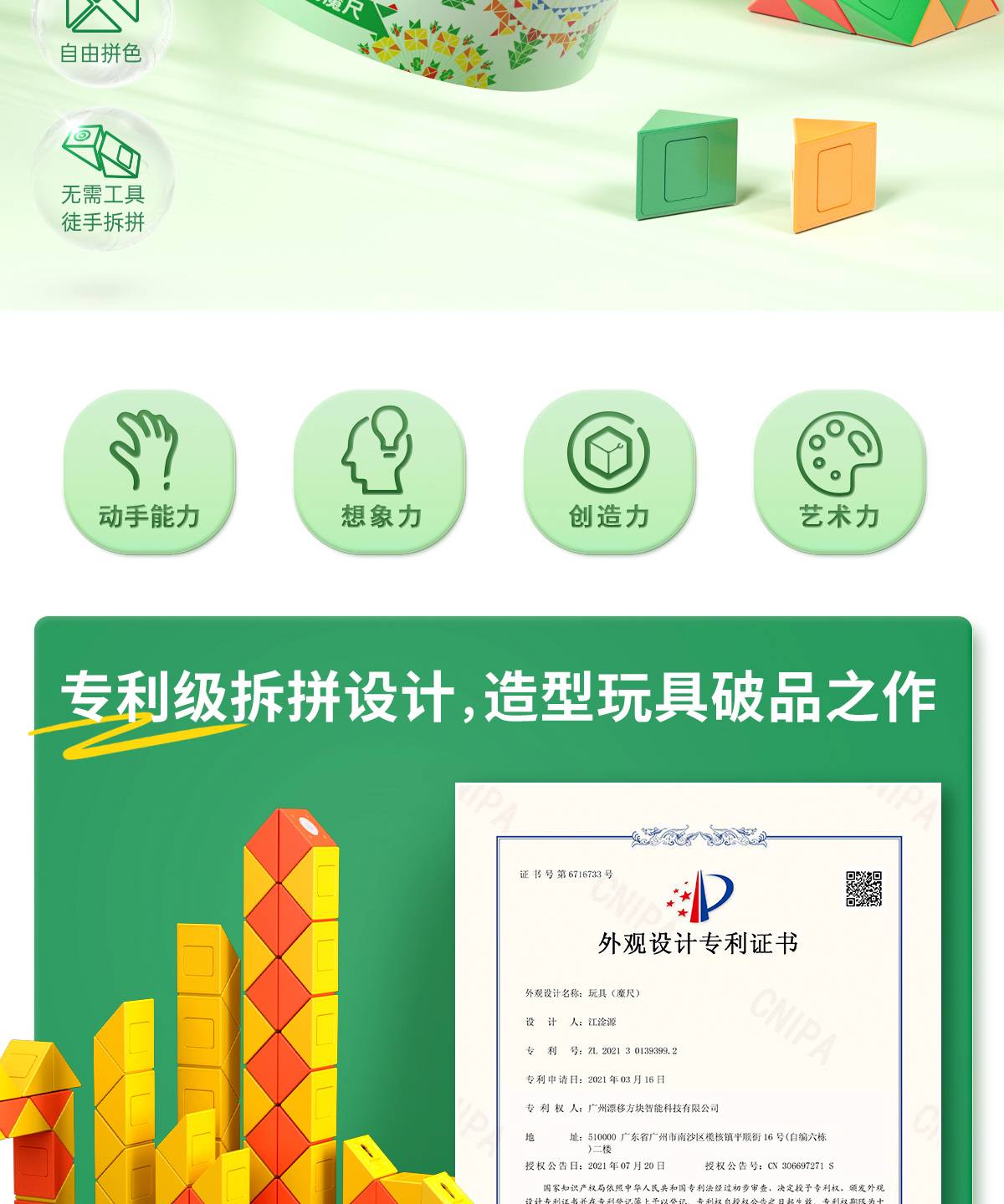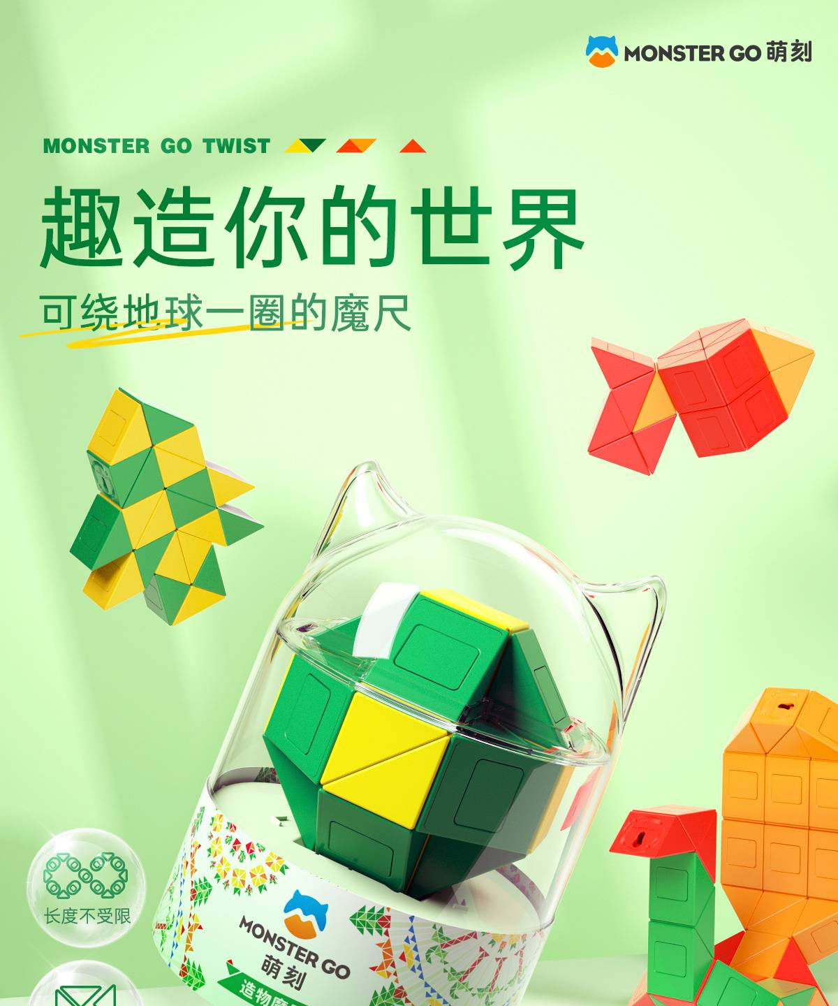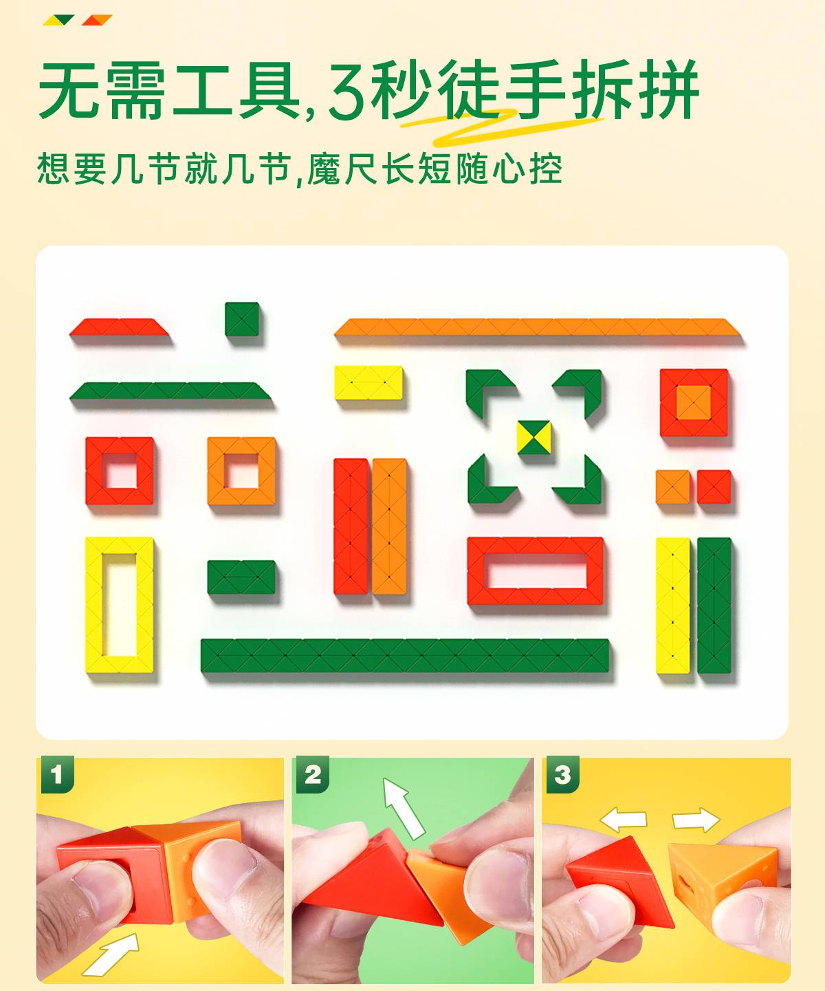 萌刻百变魔尺造物24段动脑玩具积木男女童幼儿园小学生奖励礼物