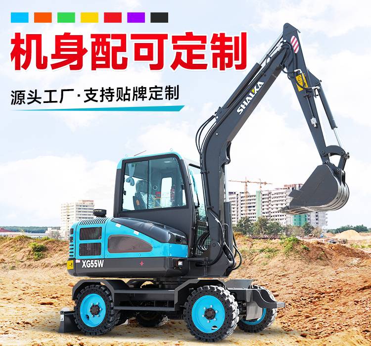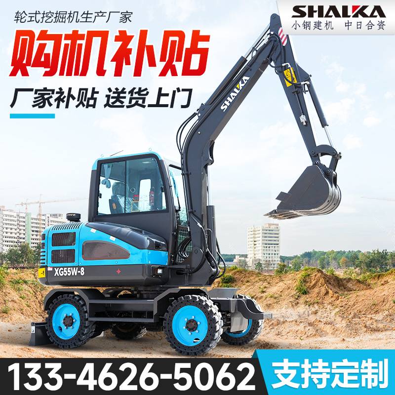 小型55轮式挖掘机生产厂家 挖深3.5米6吨轮挖 品牌发动机