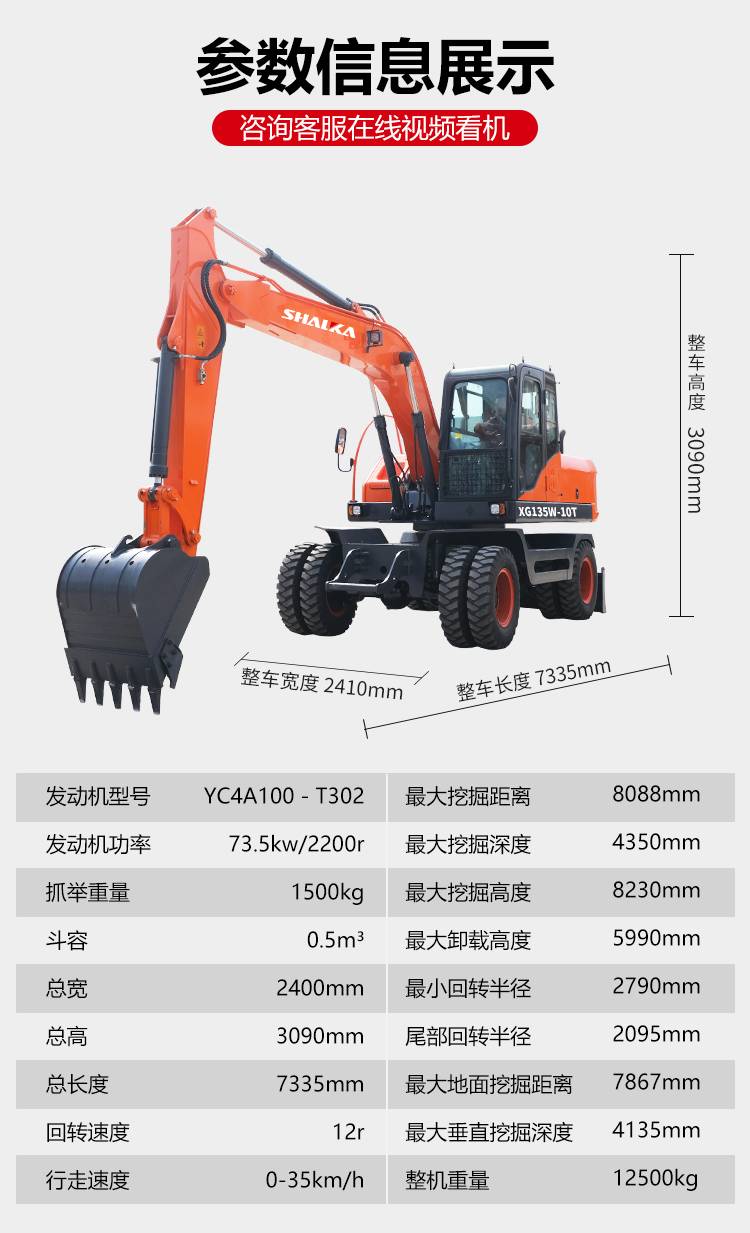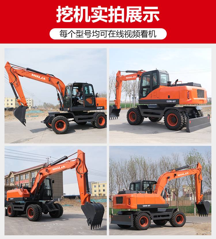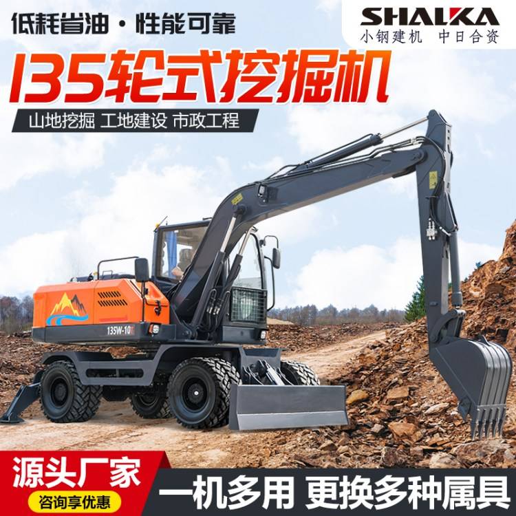 小型135轮式挖掘机生产厂家 360°旋转机身挖机 工程微型钩机