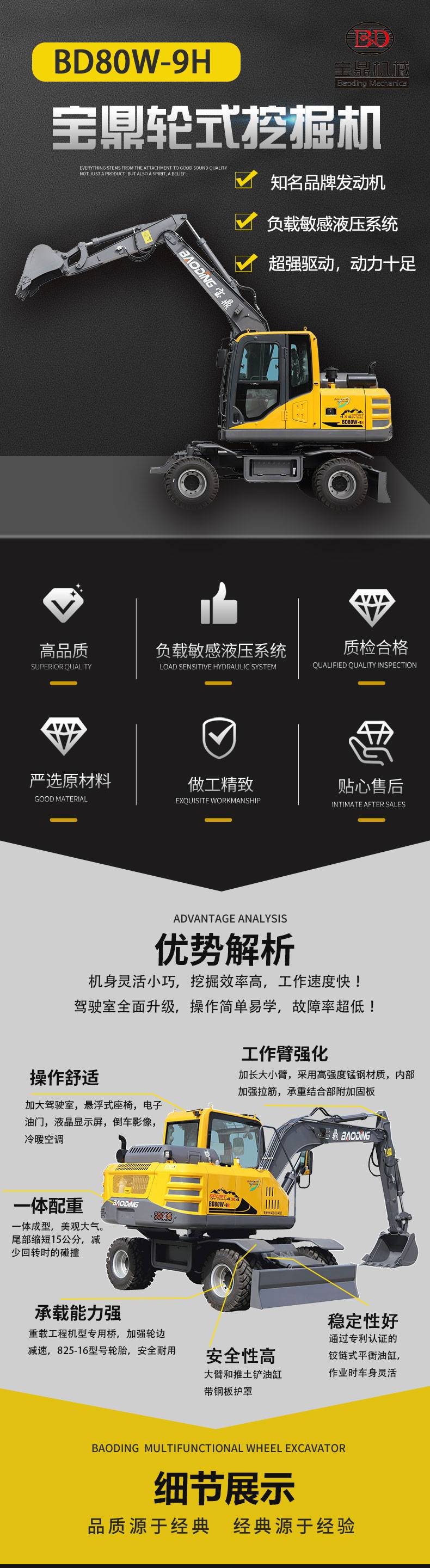 BD80W-9H轮式挖掘机厂家直供 小型胶轮挖机 80轮胎小勾机