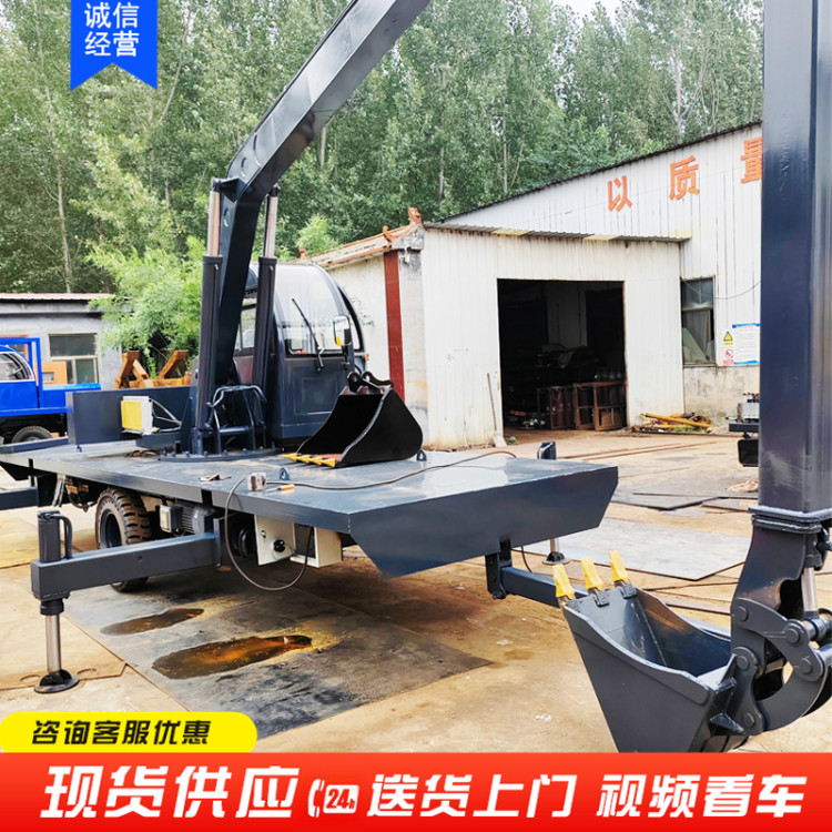 液压支腿轮式挖掘机 操作简单农用钩机 多功能挖土机 臂长可定制 百茂