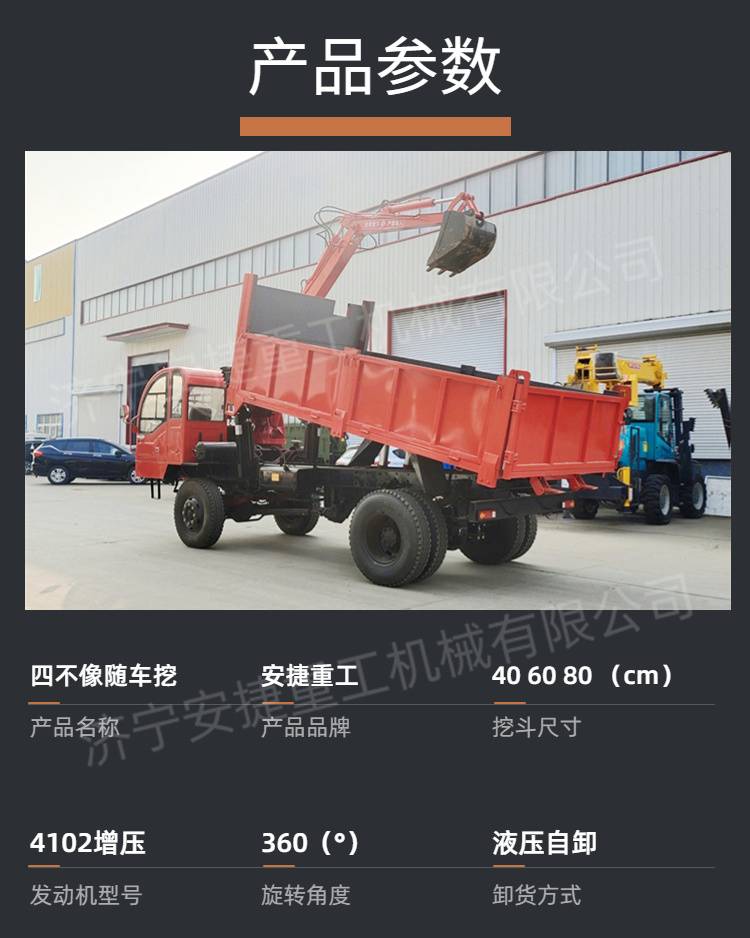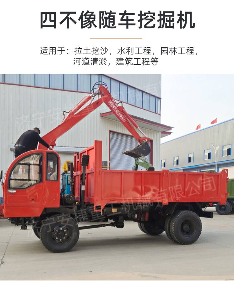 四不像随车挖一体机 双顶臂四驱轮式挖掘机 土方挖掘运输车