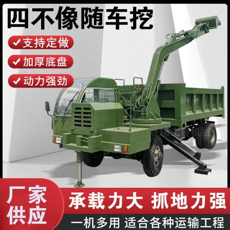 四不像随车挖掘机 多功能轮式随车挖 拉土拉沙车载挖运一体机
