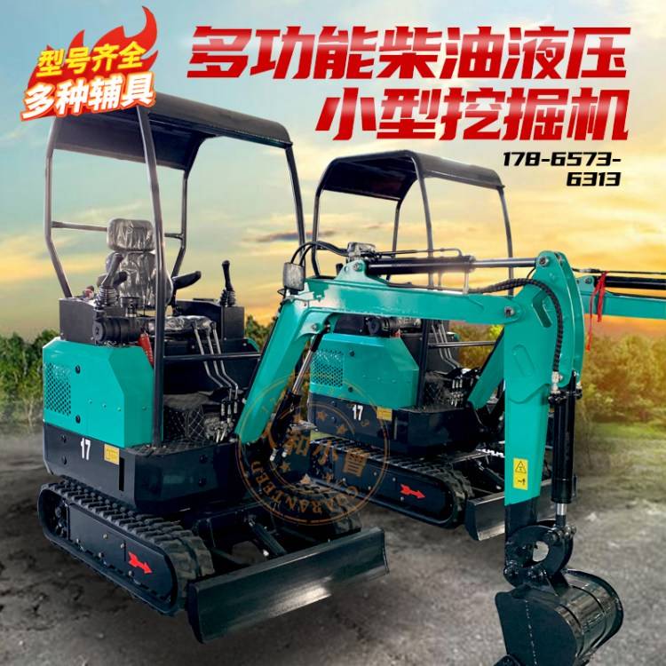 151718微型挖掘机 工程用履带挖沟机 农场配耙子松土螺旋钻 轮式钩机