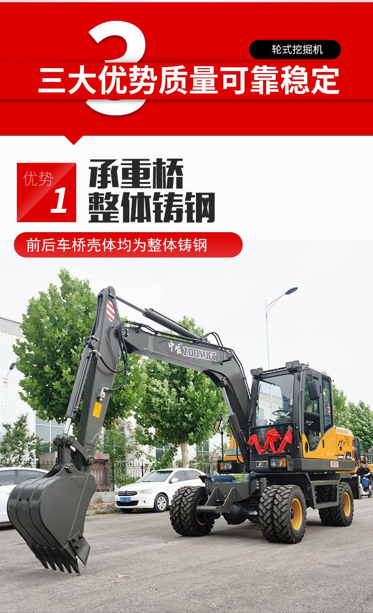 越野四驱小轮挖 供应65/75/85轮式挖掘机 园林农用挖土机 中崛