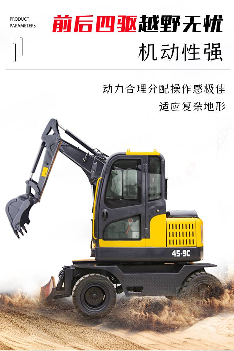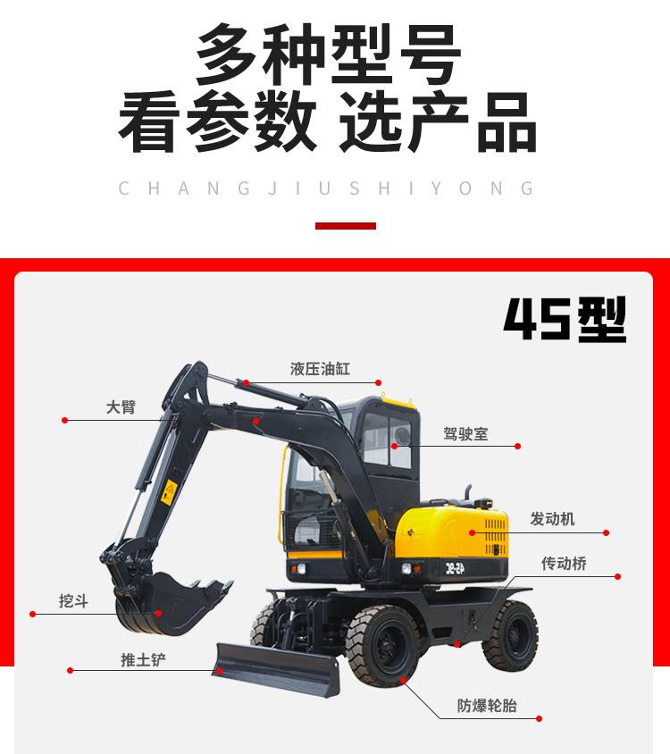 45型轮式挖掘机 园林抓木破碎机轮挖 工程专用挖机