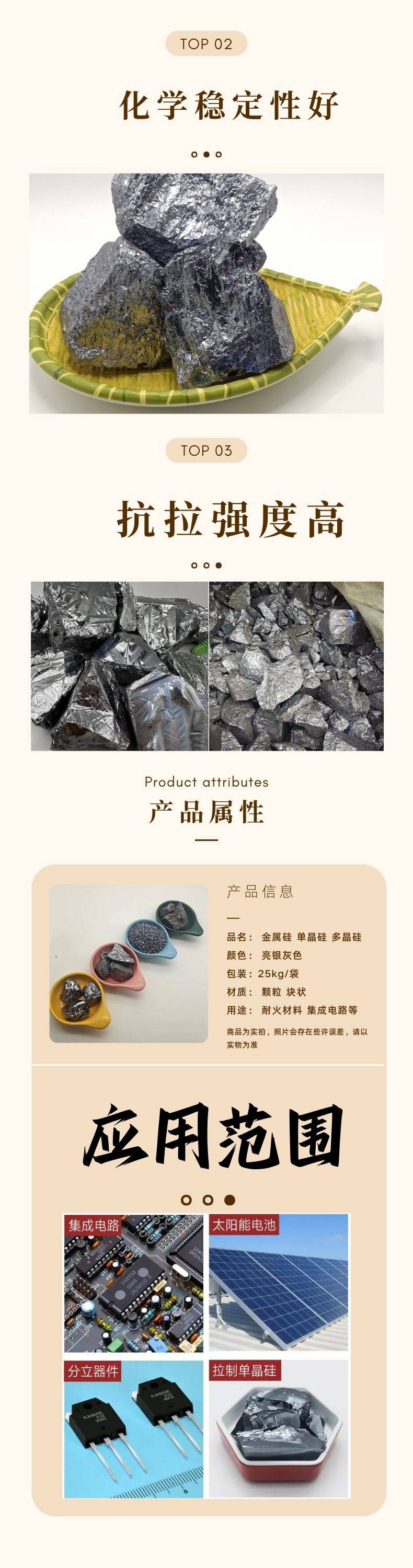 金属硅单晶硅块冶金用材料太阳能电池集成电路用多晶硅性能稳定