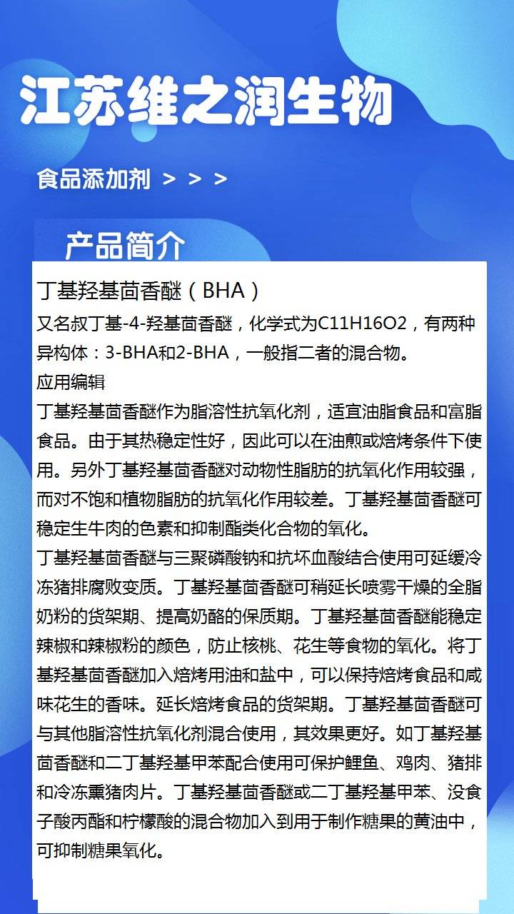 BHA 丁基羟基茴香醚 生产厂家 油脂类面制品 食品添加剂抗氧化剂
