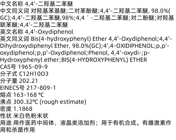 4,4'-二羟基二苯醚 1965-09-9 医药中间体 用于有机合成 液晶类添加剂