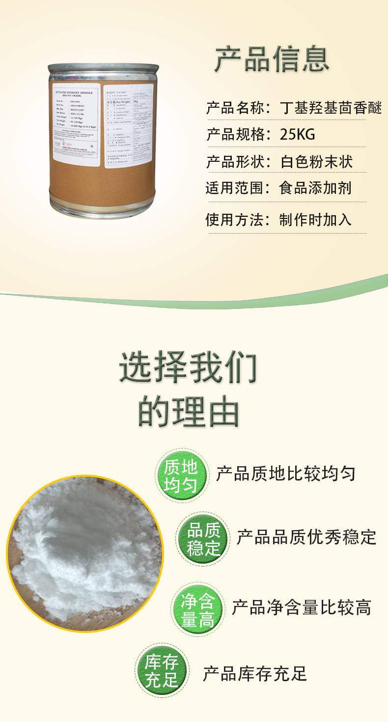 丁基羟基茴香醚生产厂家 食品级油脂类面制品防酸化抗氧化剂 BHA