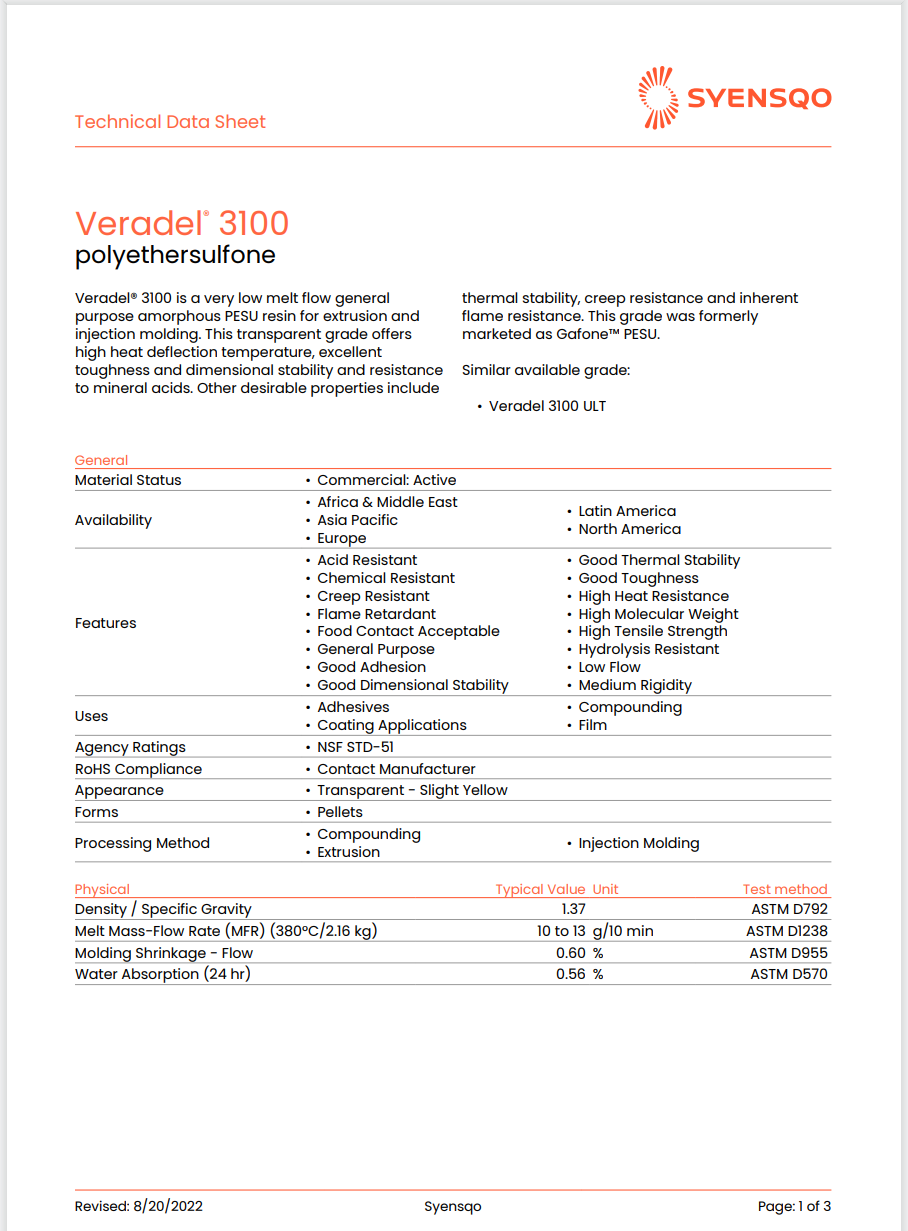 代理经销/美国苏威 PESU Veradel HC A-301 抗伽马辐射 医疗级 聚醚砜